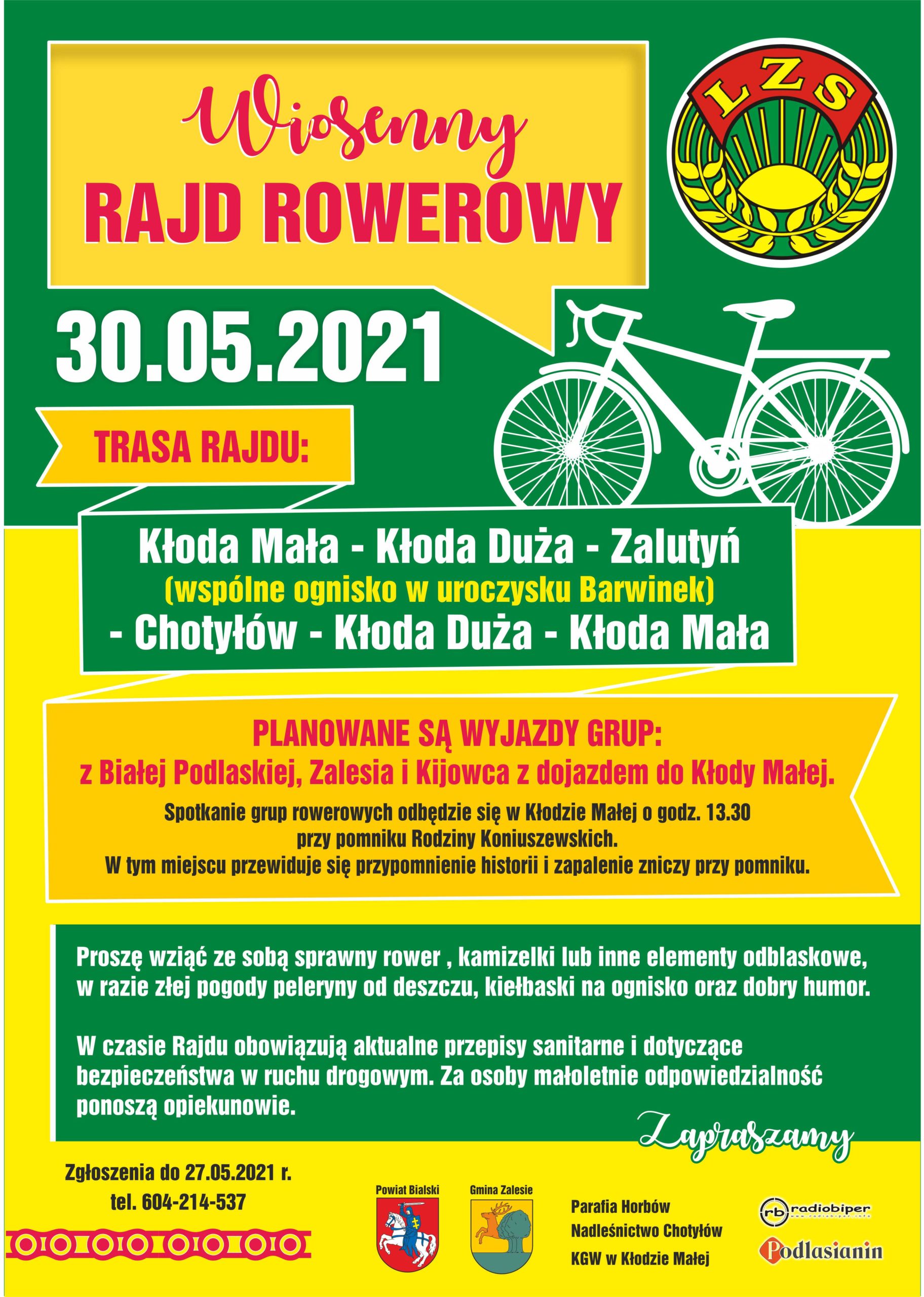 Wiosenny Rajd Rowerowy LZS 25 maja 2021 / Przez Elżbieta Głowińska 30 maja br. zapraszamy do uczestnictwa w Wiosennym Rajdzie Rowerowym LZS. Szczegóły imprezy na załączonym plakacie.
