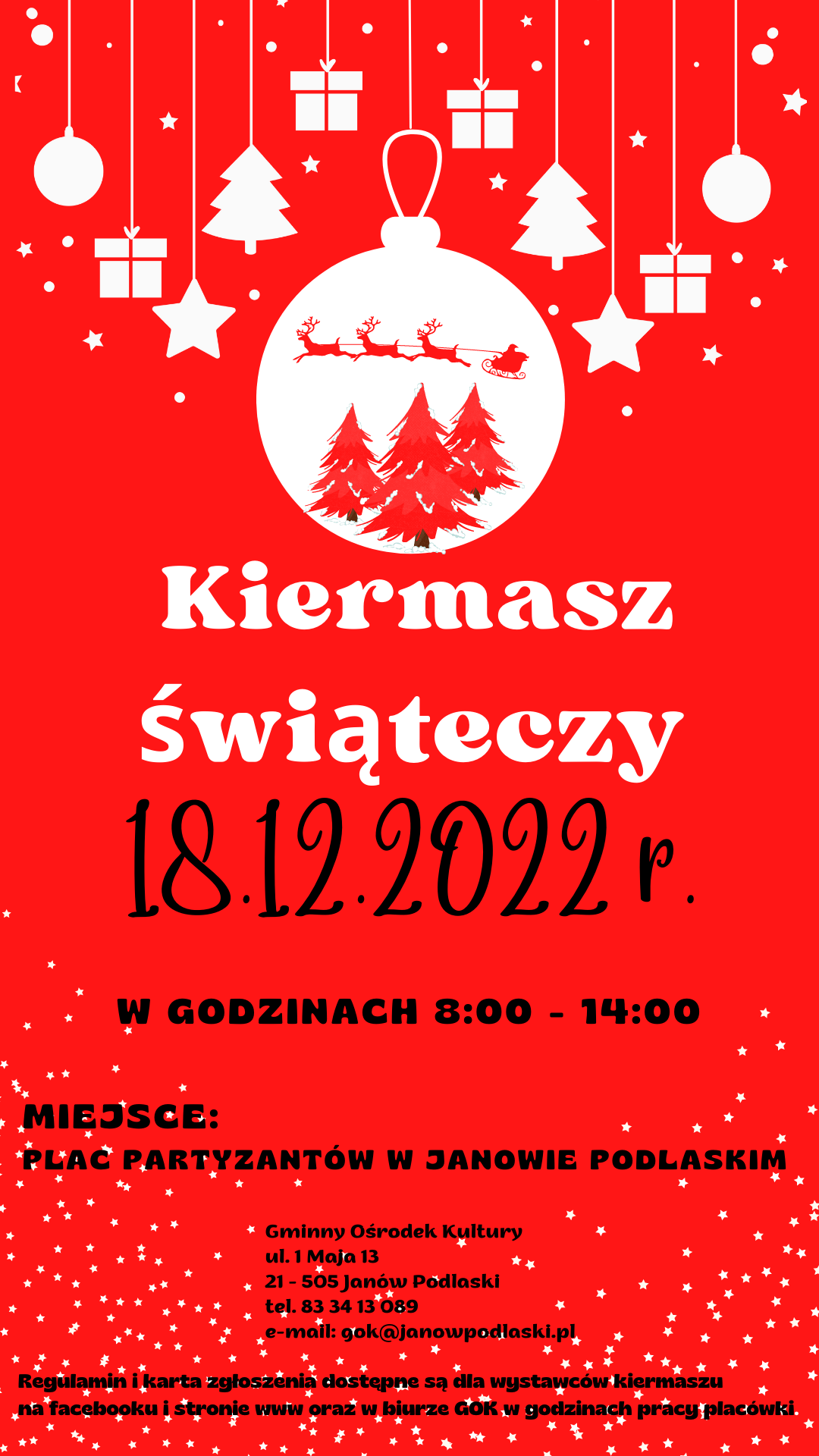 Kiermasz świąteczny w Janowie Podlaskim – zaproszenie 14 listopada 2022 / Przez Dorota Uryniuk Zaproszenie na kiermasz świąteczny Regulamin Karta zgłoszenia