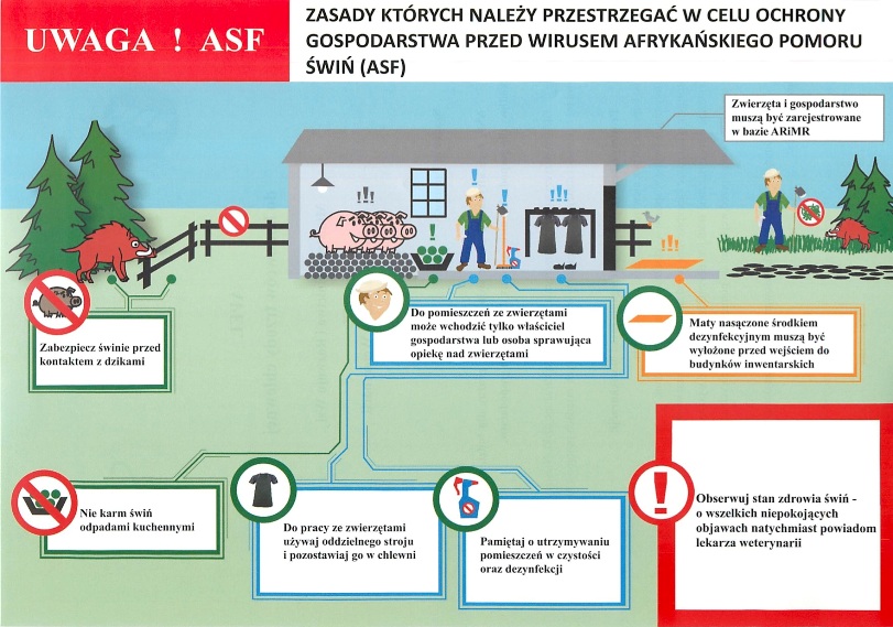 Przypomnijmy, że w obszarze zapowietrzonym obowiązuje bezwzględny zakaz handlu żywcem oraz wyprowadzania świń z gospodarstw przez okres 40 dni. Każde przemieszczenie zwierząt z gospodarstw położonych na tym terenie należy zgłosić do powiatowego lekarza weterynarii. Wszelkie próby wywożenia zwierząt, które nie zostały uprzednio zgłoszone będą surowo karane.