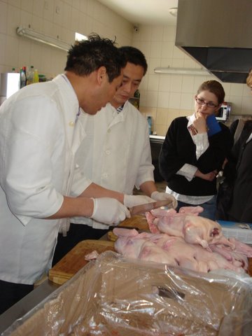z delegacją chińscy kucharze dzięki uprzejmości i życzliwości właścicieli Hotelu Hesperus w Międzyrzecu Podl. zorganizowali specjalny pokaz przyrządzania kaczki. Jak zgodnie podkreślali polska kaczka smakuje wyśmienicie.