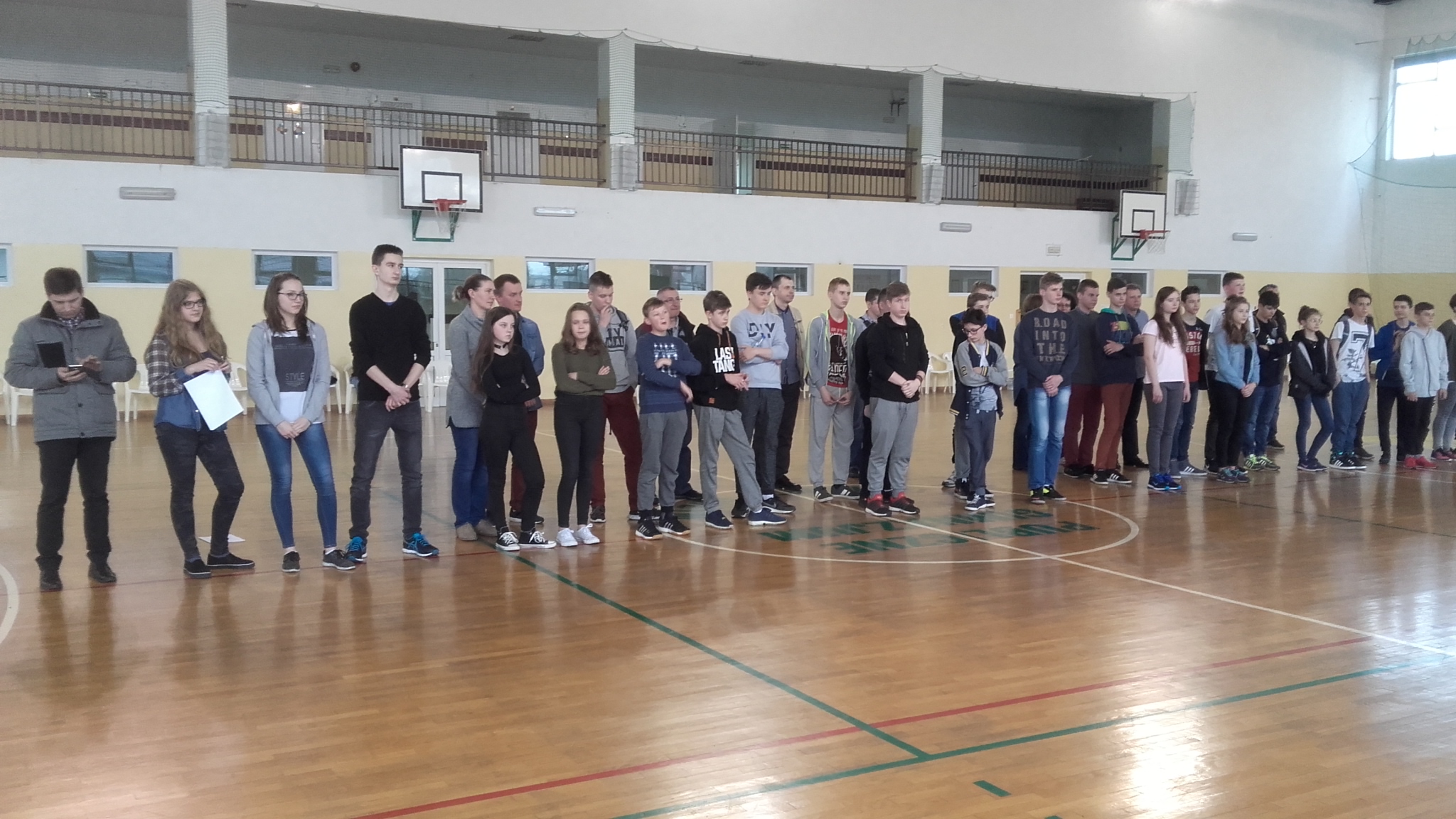 w Publicznym Gimnazjum im. Władysława Stanisława Reymonta w Ciciborze Dużym. Wzięło w nim udział 12 trzyosobowych drużyn .