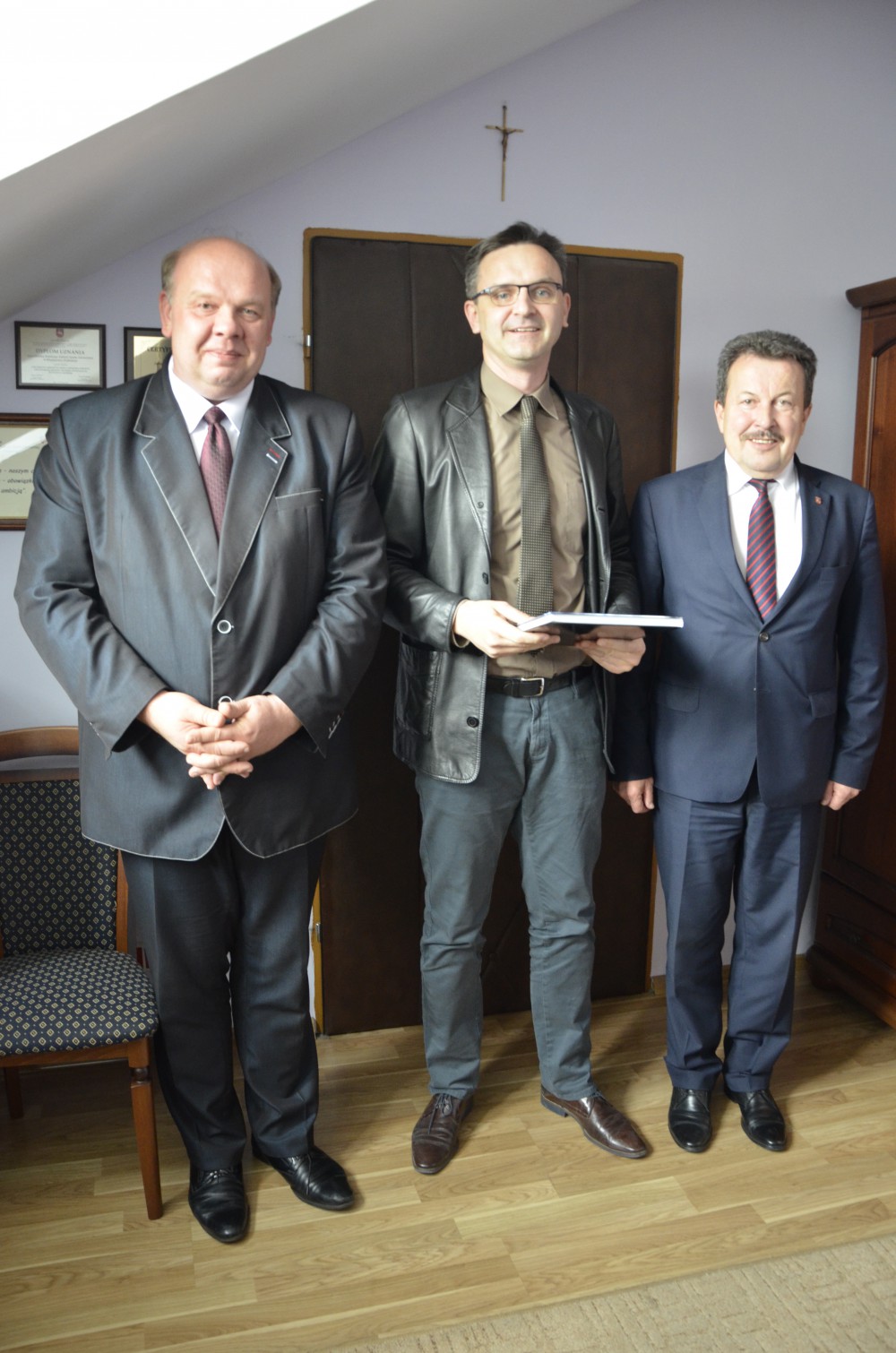 Zastępca Dyrektora Samodzielnego Publicznego Zakładu Opieki Zdrowotnej w Międzyrzecu Podlaskim Maciej Płaszewski, po przeprowadzeniu postępowania habilitacyjnego przez Centralną Komisję do Spraw Stopni i Tytułów w Zakresie Nauki i Sztuki, na podstawie oceny dorobku, w tym cyklu publikacji naukowych pod wspólnym tytułem „Badania przesiewowe i postępowanie zachowawcze w skoliozach idiopatycznych a zasady Evidence-based Practice: analiza systematyczna doniesień naukowych i rekomendacji oraz badanie odległych efektów interwencji”, odebrał 6 października z rąk Rektora Akademii Wychowania Fizycznego w Krakowie dyplom potwierdzający nadanie stopnia naukowego doktora habilitowanego. Z tej okazji starosta bialski Tadeusz Łazowski 15 października złożył mu wizytę i pogratulował tytułu naukowego oraz życzył dalszego rozwoju.