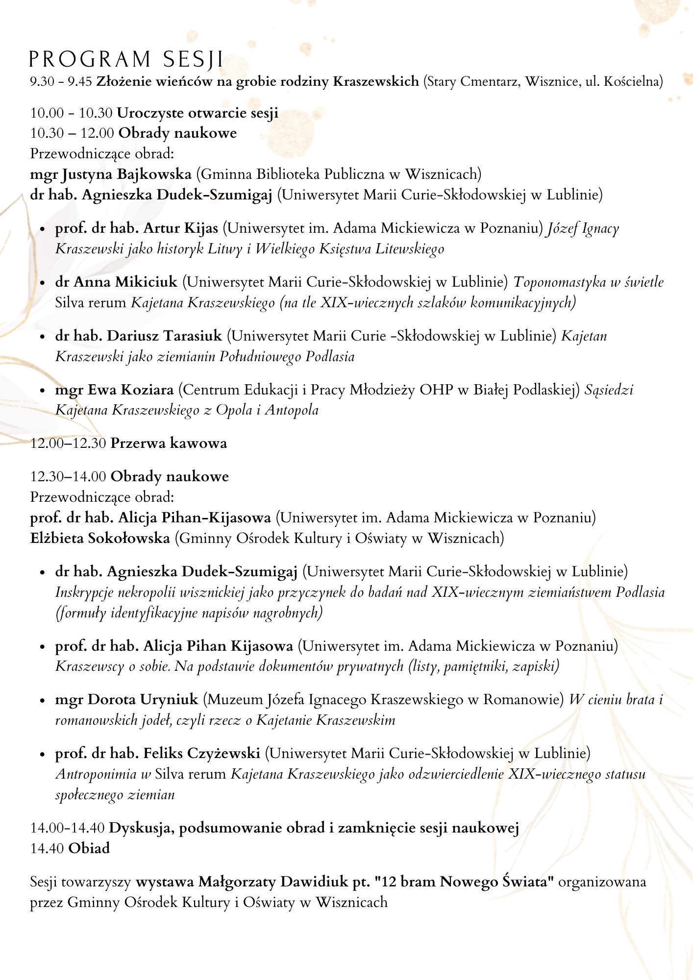 III WISZNICKA SESJA NAUKOWA „KRASZEWSCY NA PODLASIU”