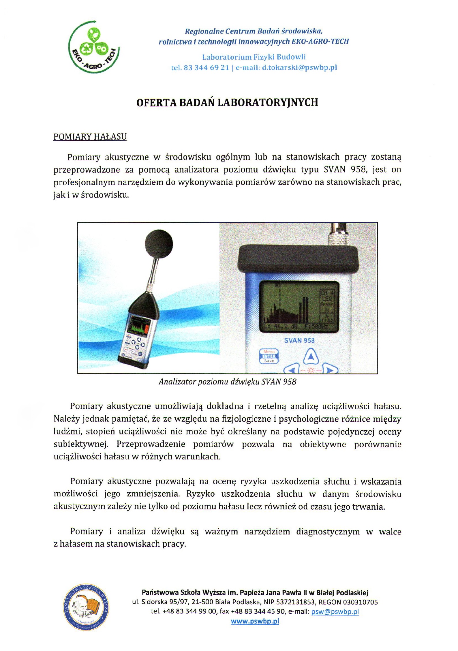 Informacja o udostępnianiu za pośrednictwem strony internetowej Starostwa Powiatowego w Białej Podlaskiej, tablicy ogłoszeń, a także czasopisma powiatu „Gościniec Bialski” szczegółowych informacji dotyczących możliwości skorzystania przez mieszkańców powiatu bialskiego z nieodpłatnych pomiarów poziomu hałasu w środowisku.