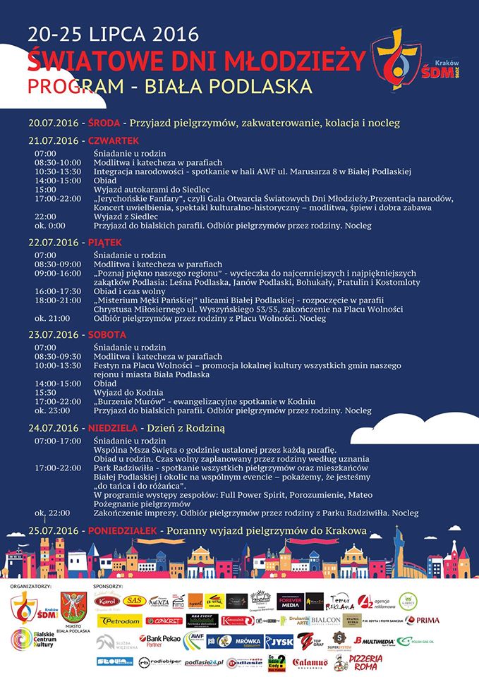 Spotkaniem „Integracja narodowości” na bialskim AWF zainaugurowano oficjalnie dni w diecezji siedleckiej rejonu bialskiego w ramach Światowych Dni Młodzieży. Odbyło się ono 21 lipca. W spotkaniu obok młodzieży uczestniczyły rodziny, u których oni nocują, a także księża z rejonu bialskiego i samorządowcy. Gości z Francji, Słowacji, Ukrainy, Białorusi i Rosji wraz z opiekunami przywitał obok prezydenta miasta Biała Podlaska Dariusza Stefaniuka starosta bialski Mariusz Filipiuk. W spotkaniu uczestniczył także wicestarosta Janusz Skólimowski. Wręczono młodzieży pakiety promocyjne i wspólnie bawiono się, tańczono, śpiewano i uwielbiano Boga przy dźwiękach ŚDM-band pod kierunkiem Łukasza Jaszczuka i chóru wykonującego pieśni religijne. Na scenie pojawiło się także bialskie Jazz Trio, chór gospelowy Power of Heaven, a Mirek Kirczuk z Full Power Spirit zaprezentował autorski projekt ewangelizacyjny „Znajdź pomysł na siebie”.
