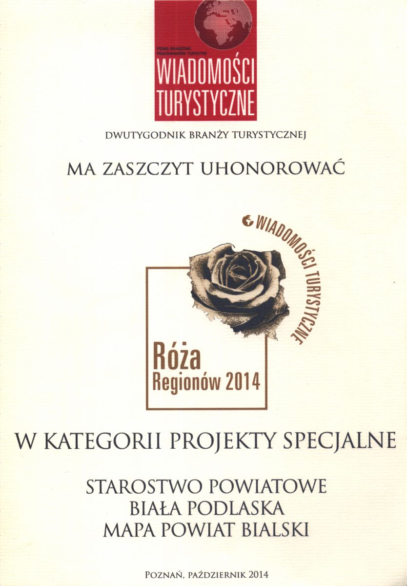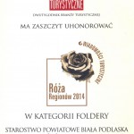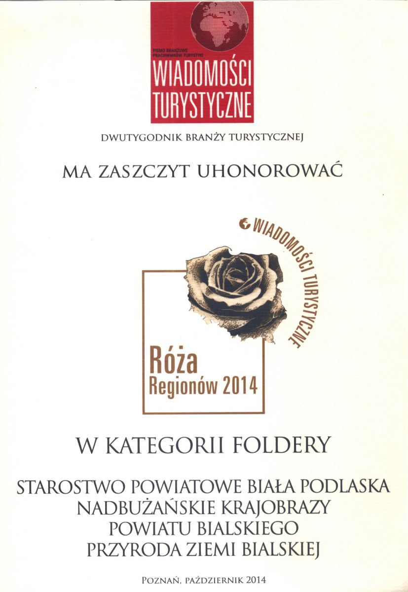 „Różę Regionów” w kategorii Foldery otrzymaliśmy za wydawnictwo Nadbużańskie Krajobrazy Powiatu Bialskiego i wydawnictwo Przyroda Ziemi Bialskiej. „Różę Regionów” w kategorii Projekty Specjalne otrzymaliśmy za Mapę Powiatu Bialskiego.