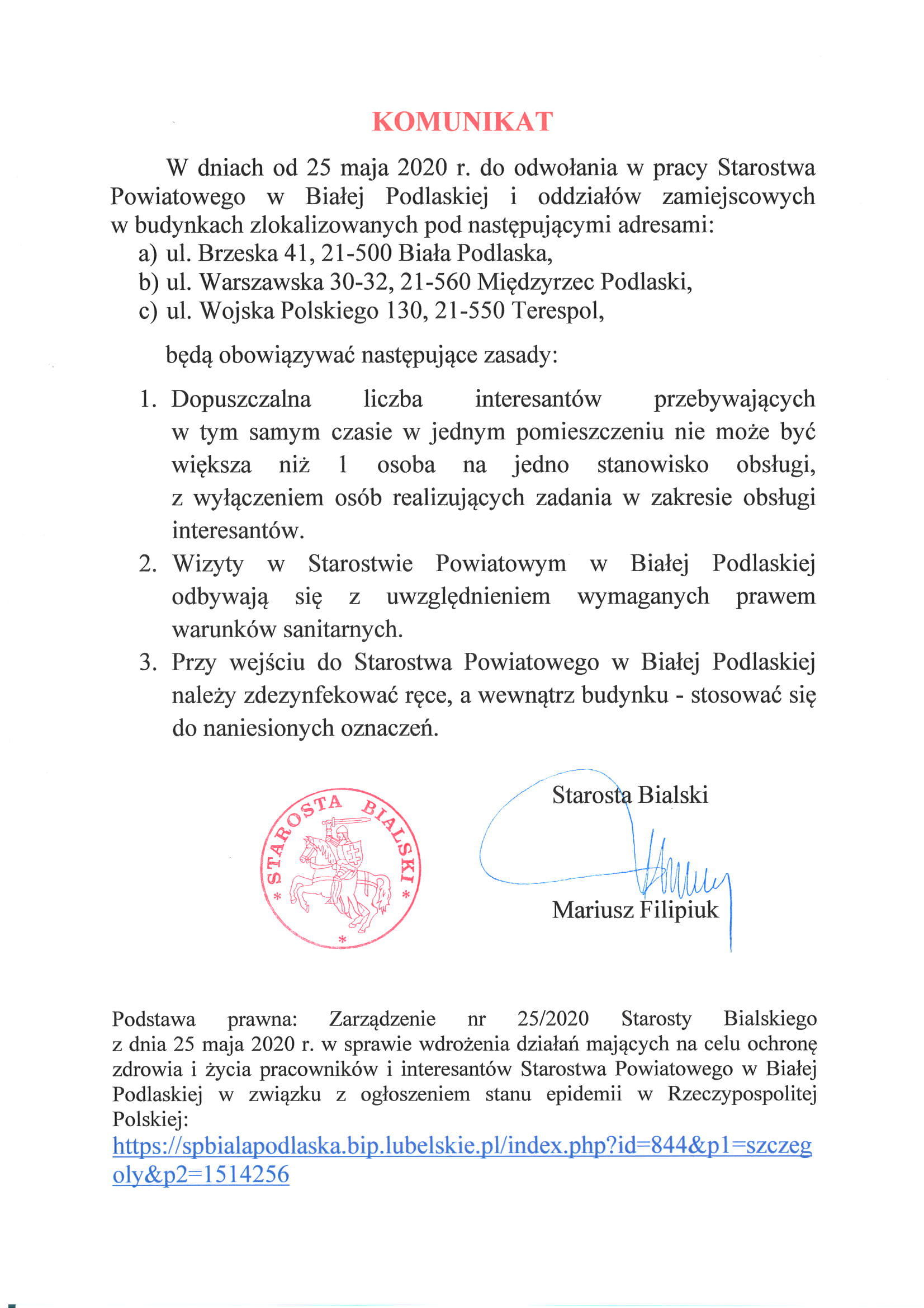 Komunikat Starosty Bialskiego