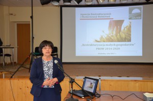 Agnieszka Sęczyk, doradca Lubelskiego Ośrodka Doradztwa Rolniczego prezentowała możliwości ubiegania się o pomoc finansową przez rolników. Aktualnie trwa nabór w ramach poddziałania „Premie na rozpoczęcie działalności pozarolniczej”. Rolnicy, prowadzący małe gospodarstwa rolne, ubezpieczeni w KRUS w pełnym zakresie mają możliwość rozpocząć pozarolniczą działalność gospodarczą korzystają z premii w wysokości 100000 zł.