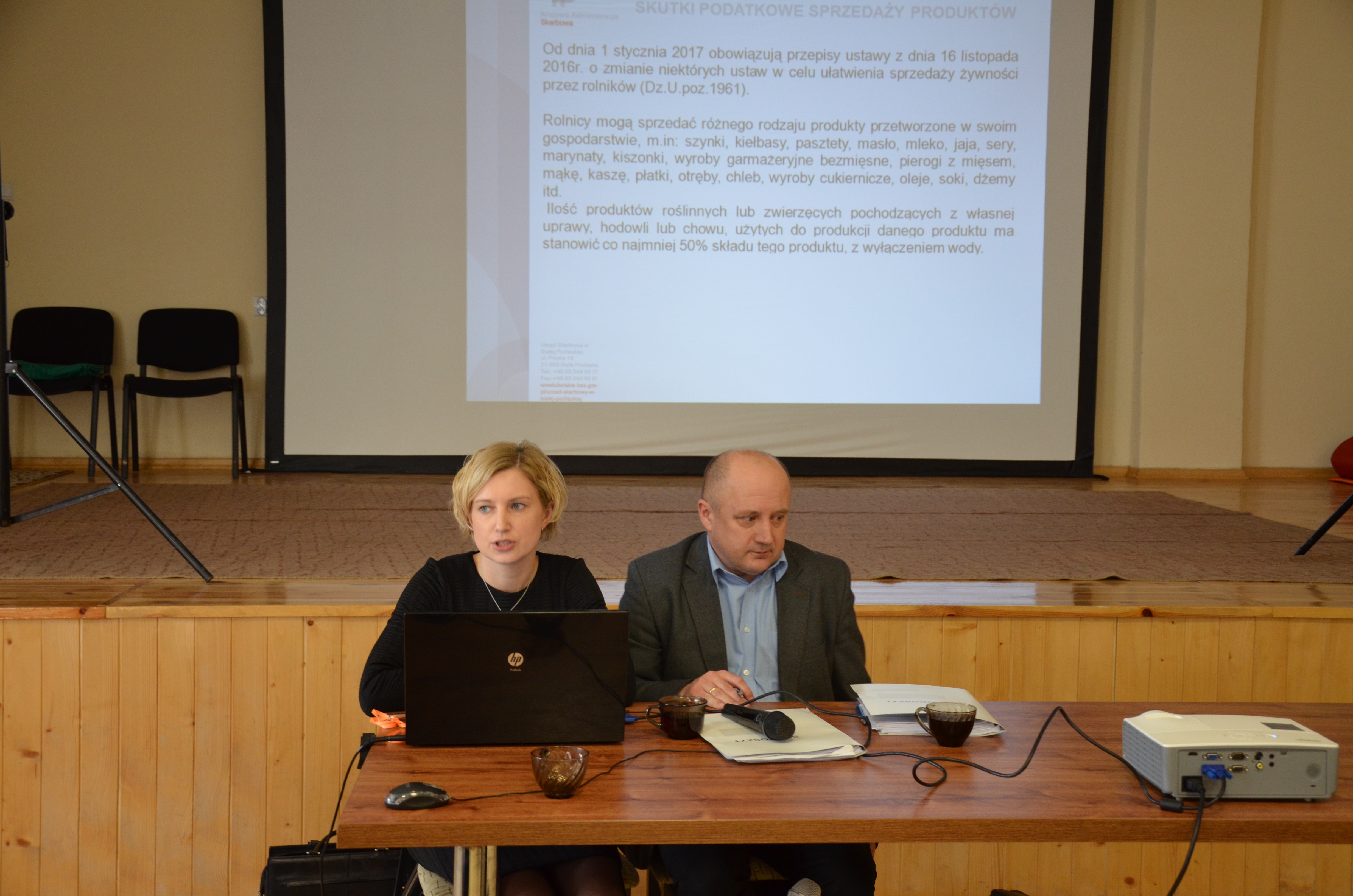 Po przerwie obecni wysłuchali wystąpienia nt. warunków prawno-podatkowych związanych ze świadczeniem usług turystycznych, w szczególności usług agroturystycznych oraz w zakresie warunków prawno-podatkowych związanych z wytwarzaniem i sprzedażą produktów rolnych na poziomie gospodarstwa (rolniczy handel detaliczny). Prelegentami byli przedstawiciele Urzędu Skarbowego w Białej Podlaskiej: Anna Godlewska i Ryszard Bachonko.