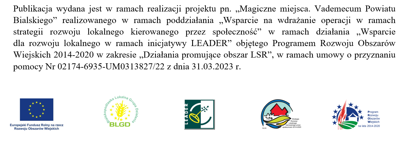 Głównym celem projektu jest promocja obszaru Lokalnej Strategii Rozwoju (LSR) poprzez wydanie publikacji pt. „Magiczne miejsca. Vademecum Powiatu Bialskiego”