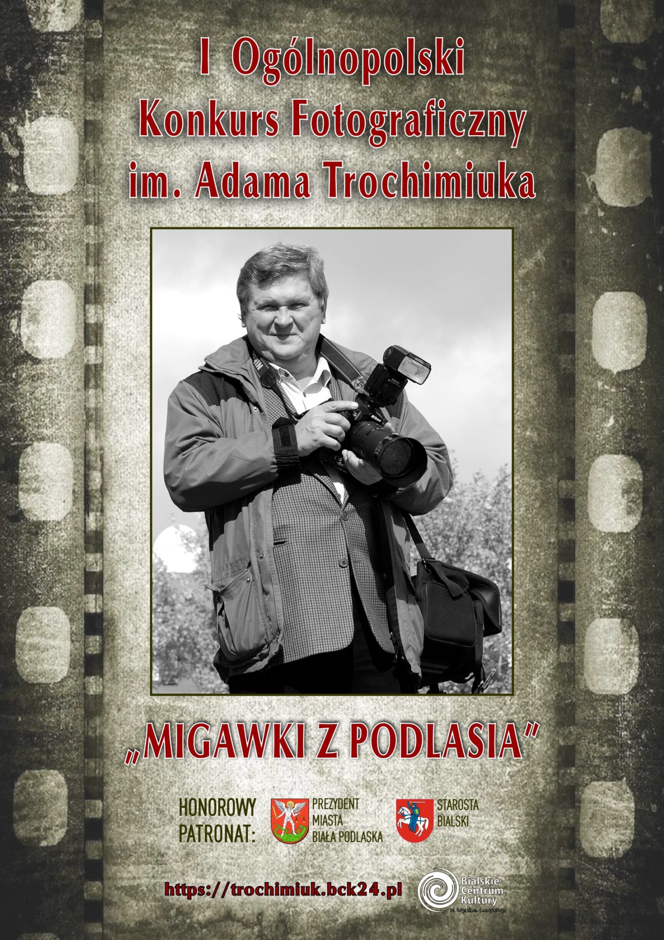 Zapraszamy Państwa do udziału w ogólnopolskim konkursie fotograficznym upamiętniającym znakomitego fotografika Pana Adama Trochimiuka. Patronat Honorowy objęli: Pan Mariusz Filipiuk, Starosta Bialski oraz Pan Michał Litwiniuk, Prezydent Miasta Biała Podlaska. Szczegóły konkursu znajdują się w regulaminie poniżej.