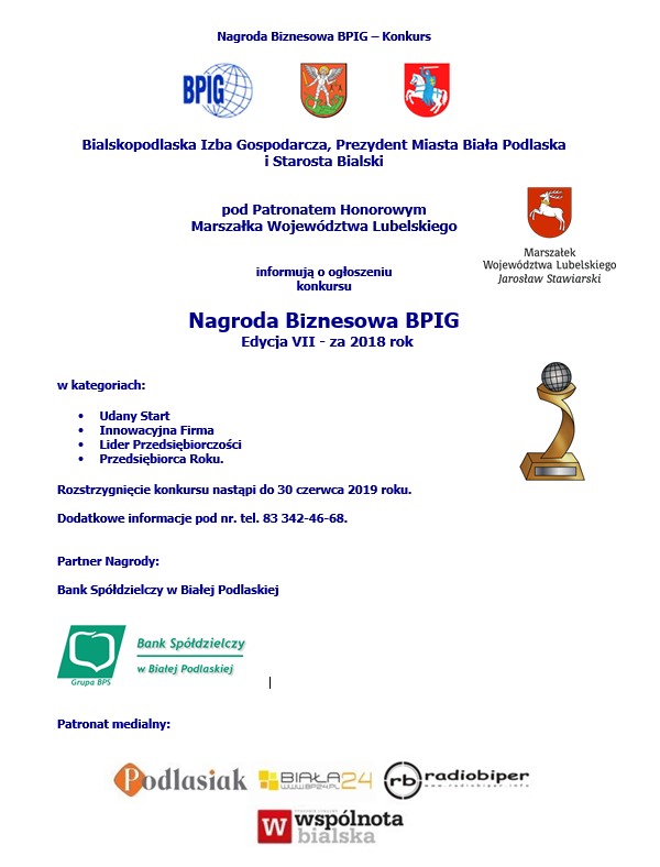 Ogłoszenie Konkursu z Patronatem – Nagroda Biznesowa BPIG – Edycja VIIPrzez Anna Jóźwik / 17 kwietnia 2019