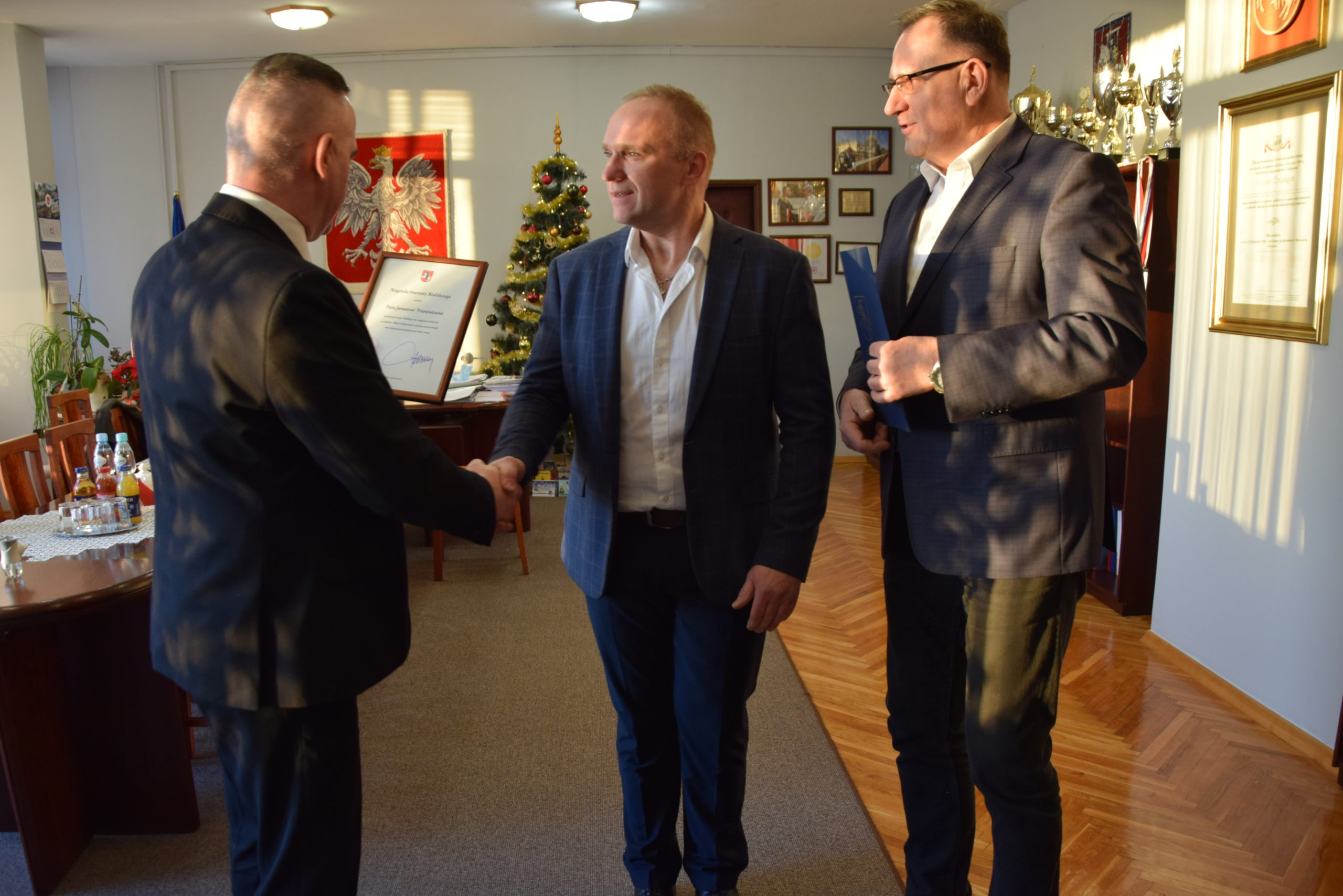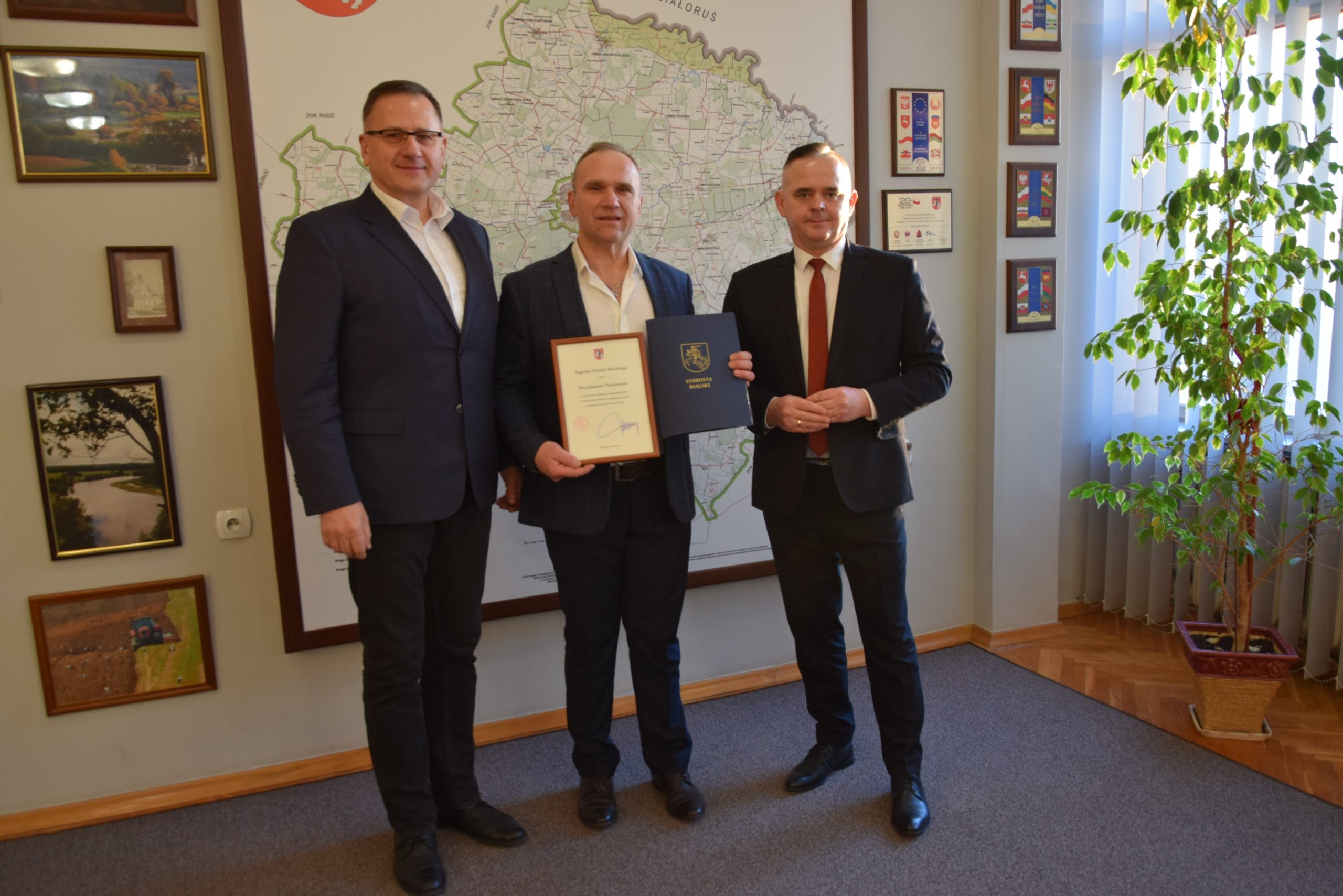 Zarząd Powiatu w Białej Podlaskiej na posiedzeniu Nr 130/2021 w dniu 15 grudnia 2021 r. rozpatrzył wniosek Pana Mariusza Kiczyńskiego, Przewodniczącego Rady Powiatu w Białej Podlaskiej, i przyznał nagrodę pieniężną Starosty Bialskiego Panu Januszowi Pruniewiczowi. Nagrodę przyznano za promocję Powiatu Bialskiego.