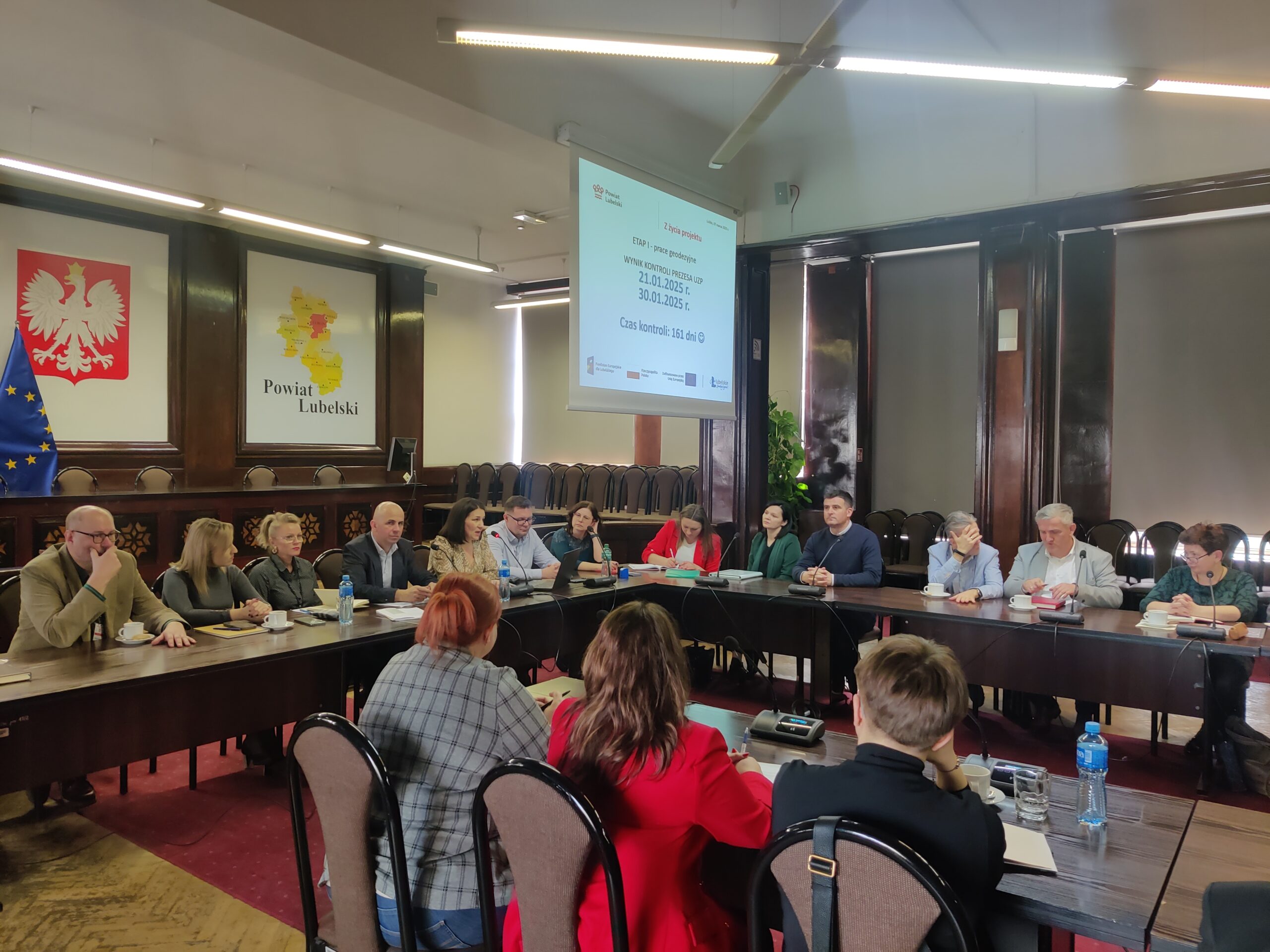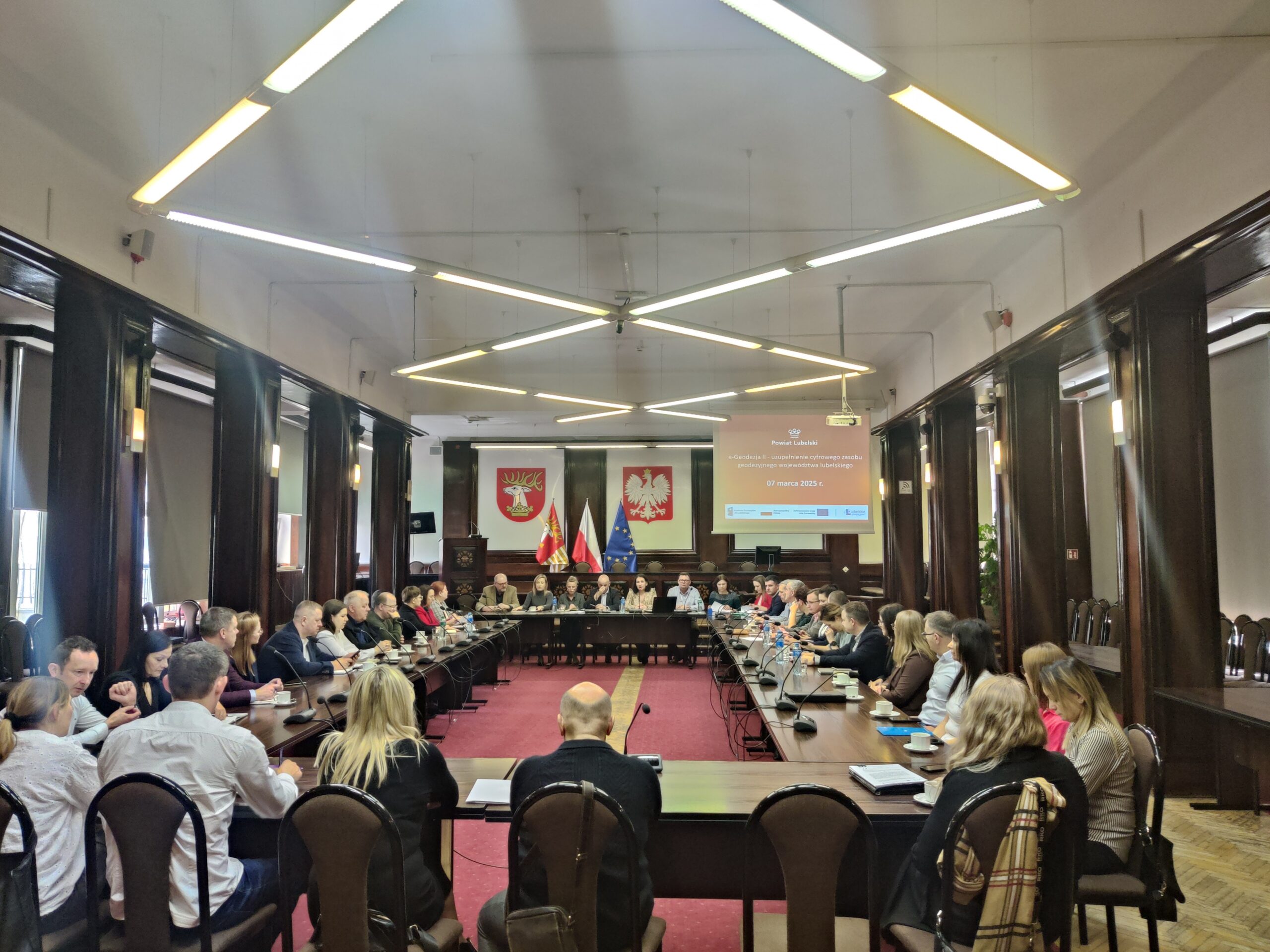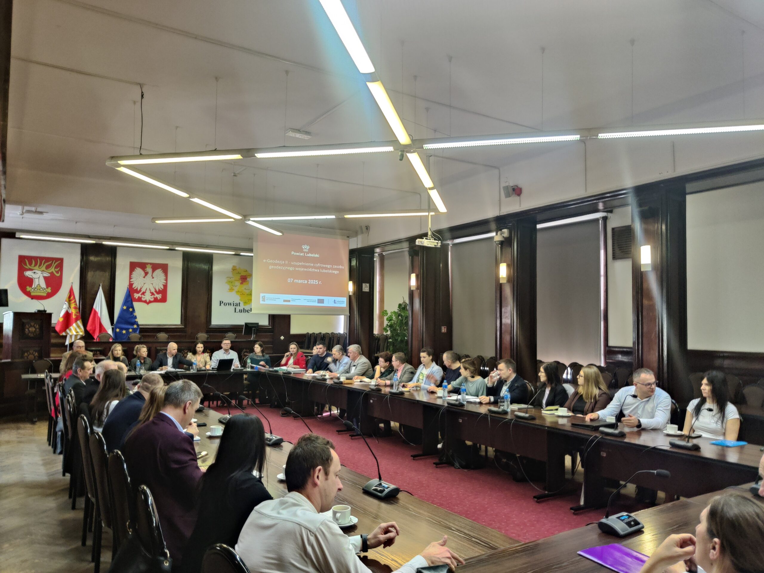 W słoneczny piątek, 7 marca br. W Starostwie Powiatowym w Lublinie spotkali się przedstawiciele służby geodezyjnej w województwa Lubelskiego. Spotkanie dotyczyło omówienia postępów realizacji projektu „e-Geodezja II – uzupełnienie cyfrowego zasobu geodezyjnego województwa lubelskiego”.
