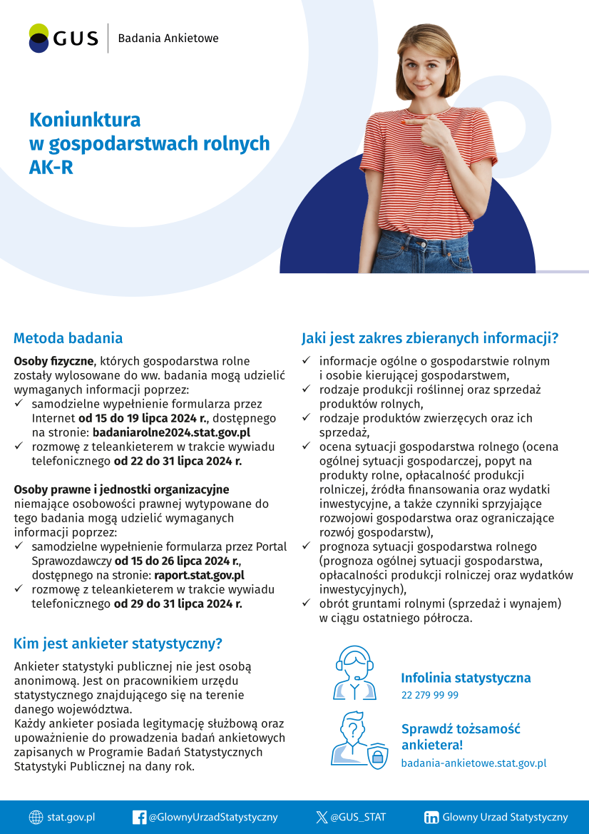 Od 31 lipca br., na terenie całego kraju Główny Urząd Statystyczny prowadzi Badanie Koniunktury w Gospodarstwach Rolnych 17 lipca 2024 / Przez Administrator