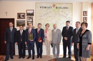 Powiat bialski i rejon brzeski współpracują razem już 15 lat. W gabinecie starosty bialskiego 10 lipca br. miało miejsce uroczyste podpisanie umowy partnerskiej współpracy pomiędzy powiatem bialskim a rejonem brzeskim. Po zmianach administracyjnych w Polsce powiat bialski podpisał umowę w 2000 roku na pięć lat i co pięć lat jest ona przedłużana. Umowa została podpisana przez starostę bialskiego Tadeusza Łazowskiego oraz przewodniczącego rady powiatu Mariusza Filipiuka. Rejon brzeski reprezentowali Włodzimierz Macuka przewodniczący rejonu brzeskiego, Ludmiła Żukowicz przewodnicząca rady deputowanych rejonu brzeskiego. Głównymi tematami współpracy jest gospodarka, rolnictwo, ochrona środowiska, zarządzanie kryzysowe, oświata oraz kultura, sport i turystyka.