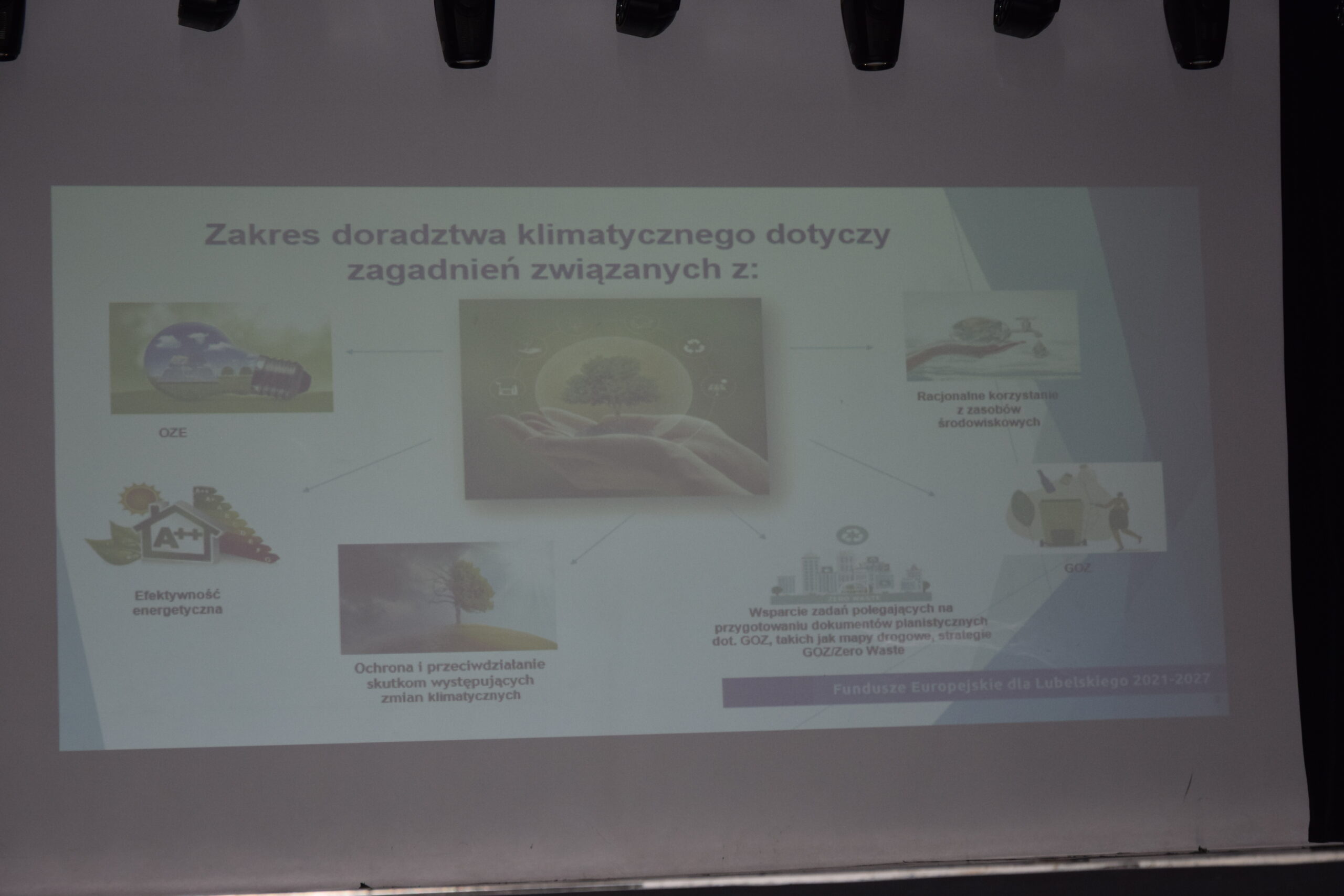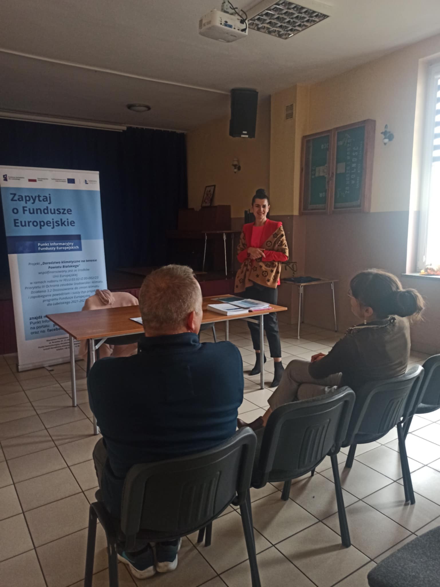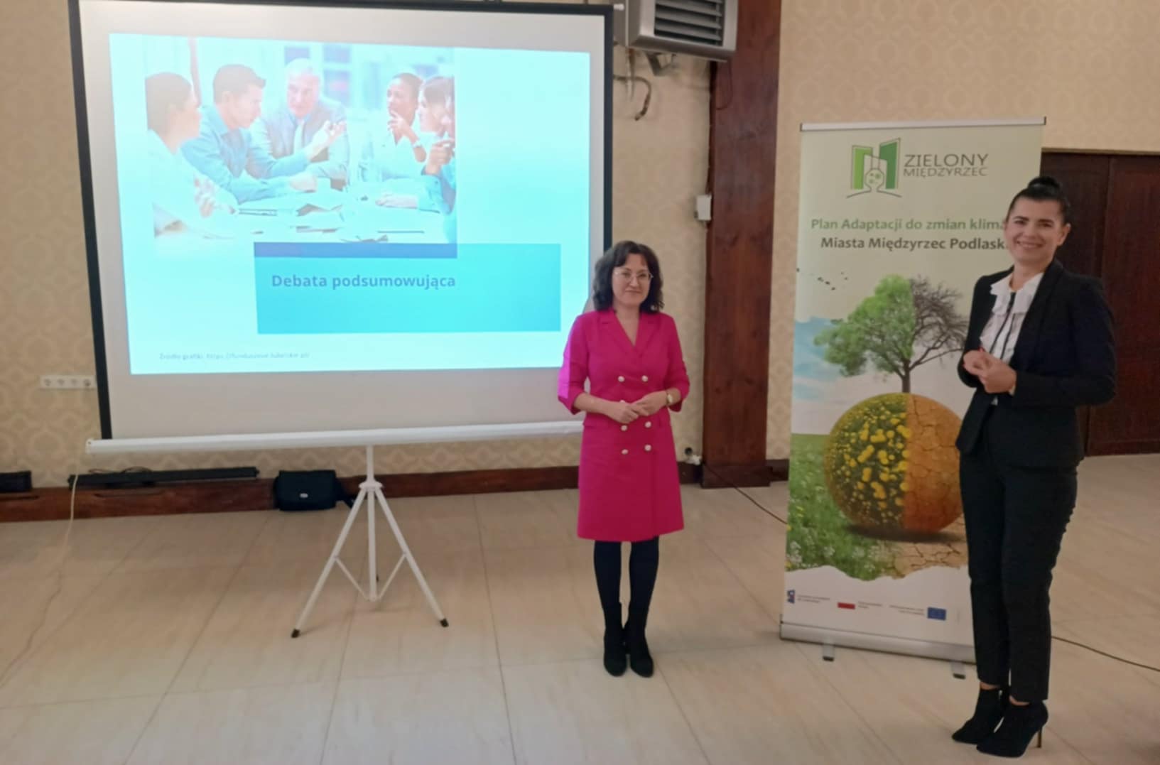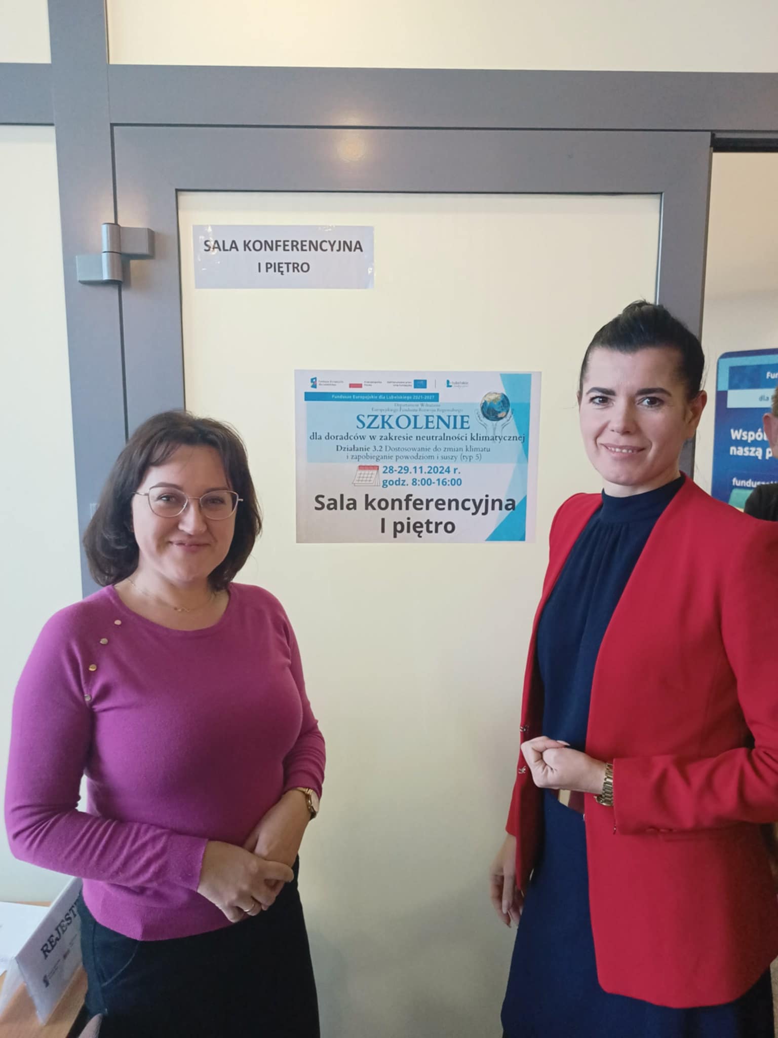 i katastrofami żywiołowymi, a także odporności z uwzględnieniem podejścia ekosystemowego. W ramach projektu zatrudnionych zostało dwóch doradców klimatycznych, którzy przeszli przeszkolenie w celu uzyskania wymaganych kompetencji w zakresie doradztwa. Szkolenia dotyczyły racjonalnego korzystania z zasobów środowiskowych, ochrony i przeciwdziałania skutkom występujących zmian klimatycznych oraz ekstremalnych zjawisk pogodowych, w tym racjonalnego gospodarowania wodą, podnoszenia świadomości dotyczącej potrzeby ograniczenia odpływu wody opadowej, a także jej magazynowania, wdrożenia gospodarki obiegu zamkniętego (GOZ), efektywności energetycznej, magazynowania i wykorzystania energii z odnawialnych źródeł.