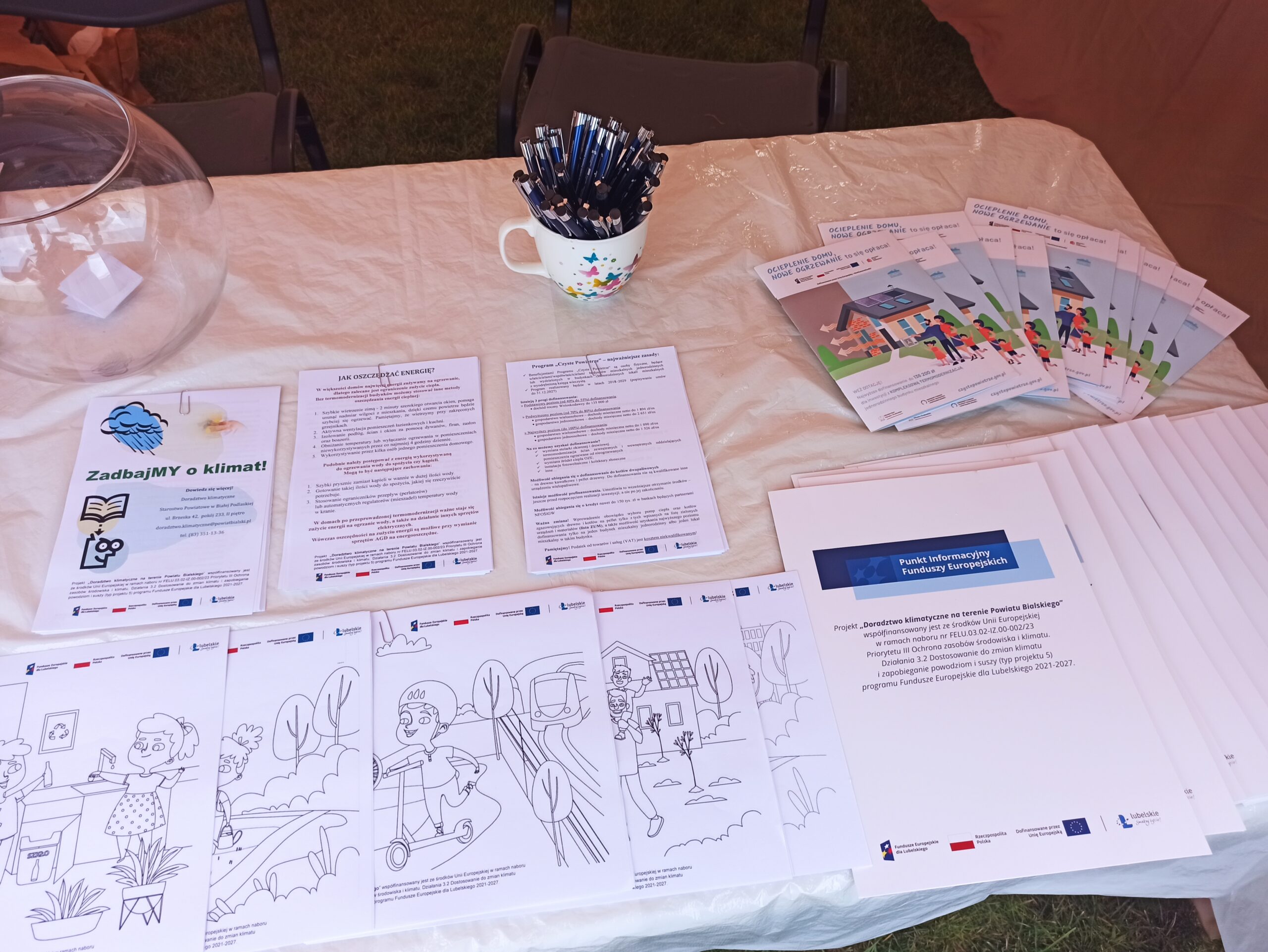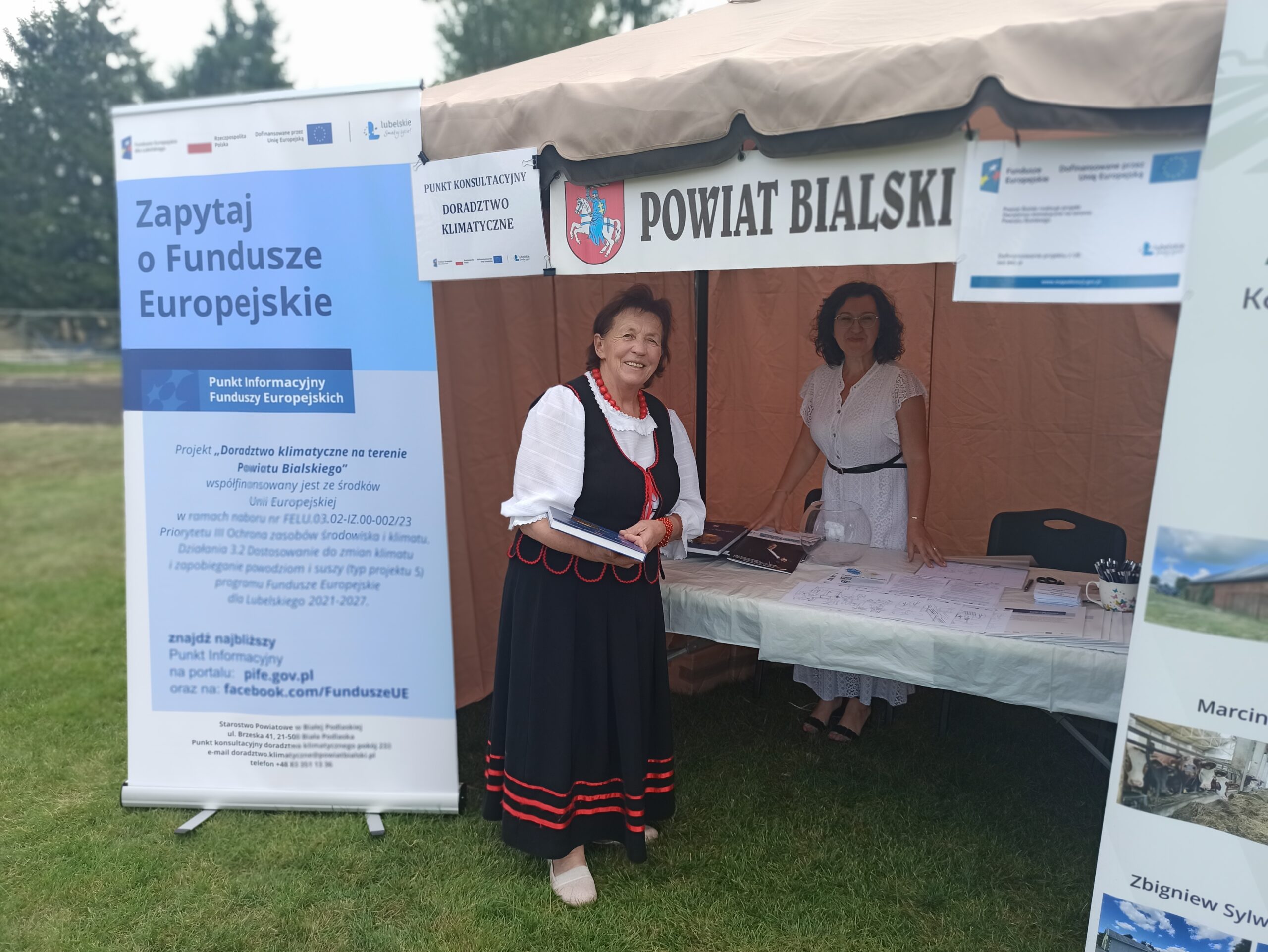 W dniu 1 września 2024 r. w gminie Wisznice odbyły się XXIV Dożynki Powiatowe. Doradcy klimatyczni wzięli udział w wydarzeniu wystawiając stoisko informacyjno – konsultacyjne. Stoisko cieszyło się dużym zainteresowaniem mieszkańców powiatu bialskiego o czym świadczy ilość przeprowadzonych konsultacji dotyczących wiedzy z zakresu programów WFOŚiGW. Doradcy klimatyczni pomyśleli także o najmłodszej grupie uczestników wydarzenia przygotowując kolorowanki i broszury dotyczące dbania o ochronę środowiska.