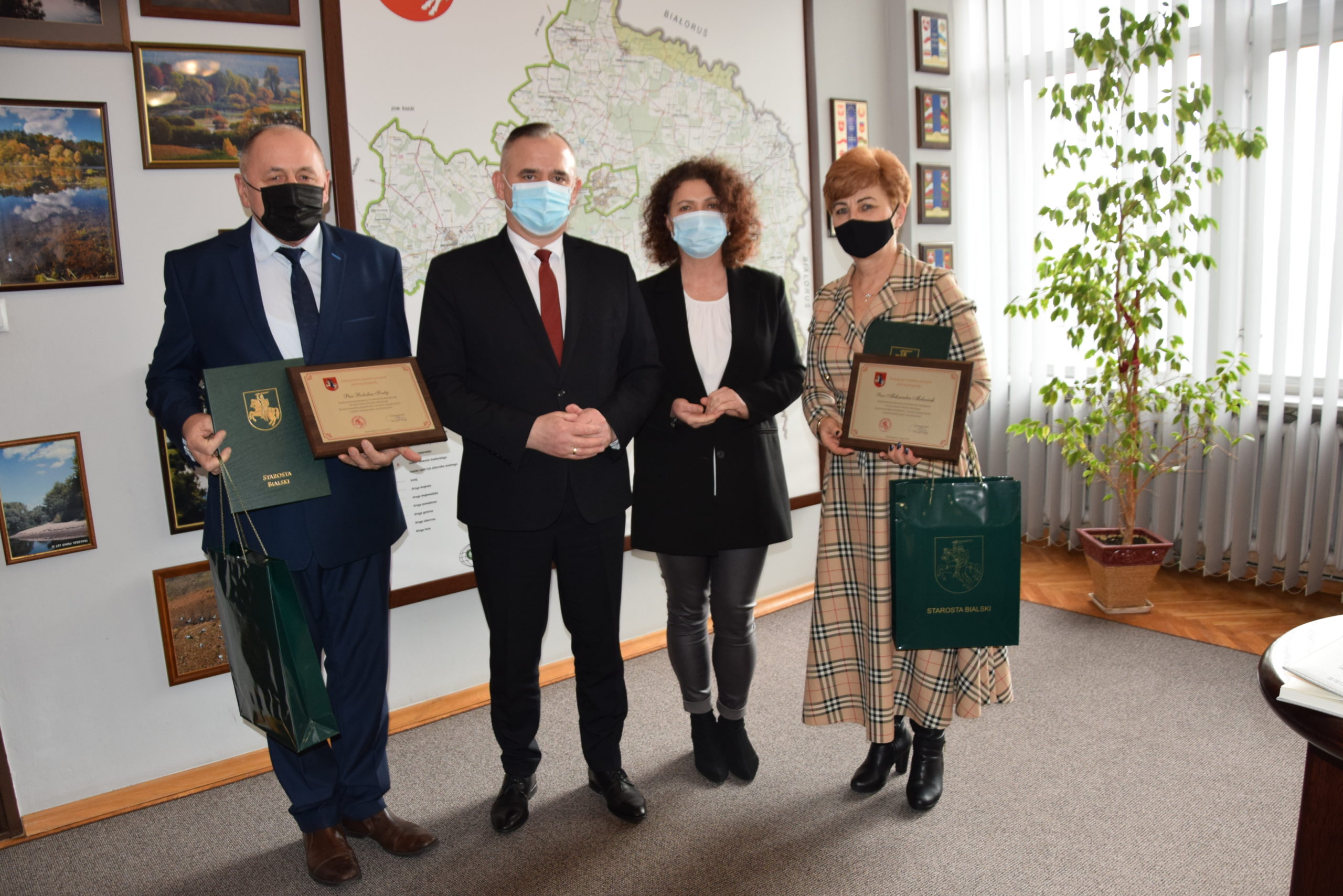 3 lutego Pan Mariusz Filipiuk, Starosta Bialski podziękował za współpracę w dziedzinie kultury byłym wieloletnim dyrektorom: Pani Aleksandrze Melaniuk, Dyrektorowi Gminnego Ośrodka Kultury w Leśnej Podlaskiej oraz Panu Bolesławowi Szulejowi, Dyrektorowi Gminnego Ośrodka Kultury w Sławatyczach.