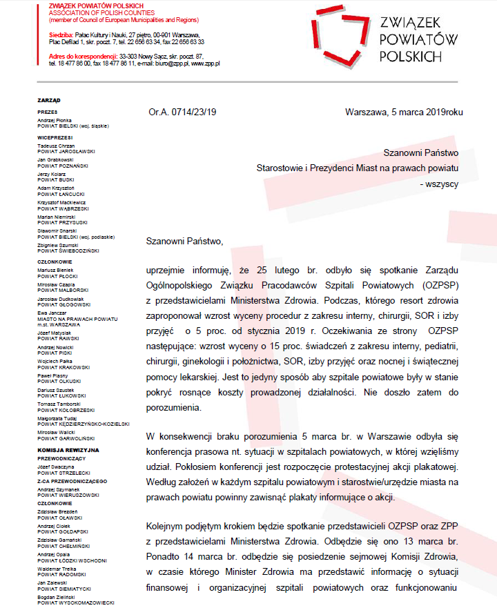 Protestacyjna akcja plakatowa dotycząca szpitali powiatowych