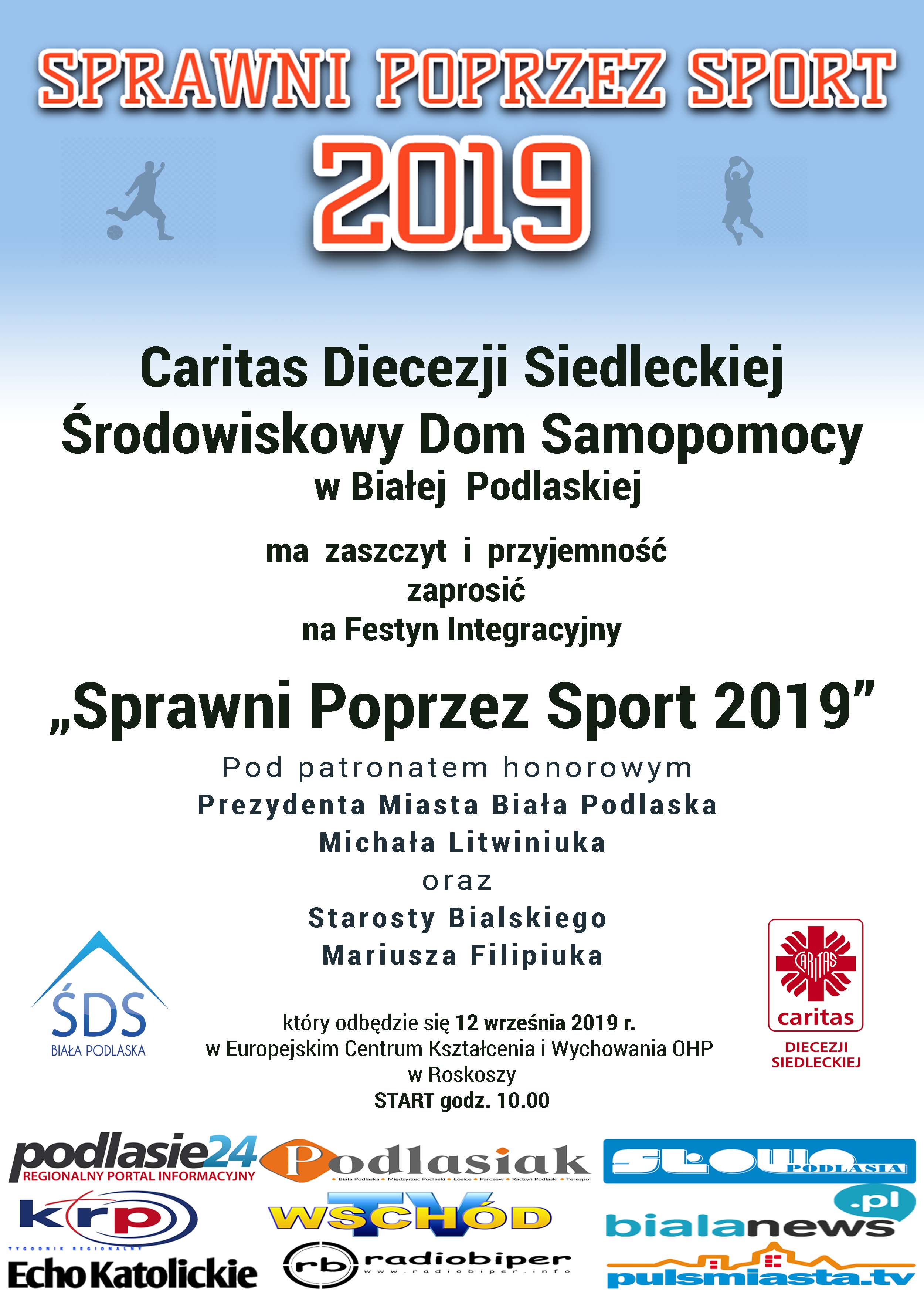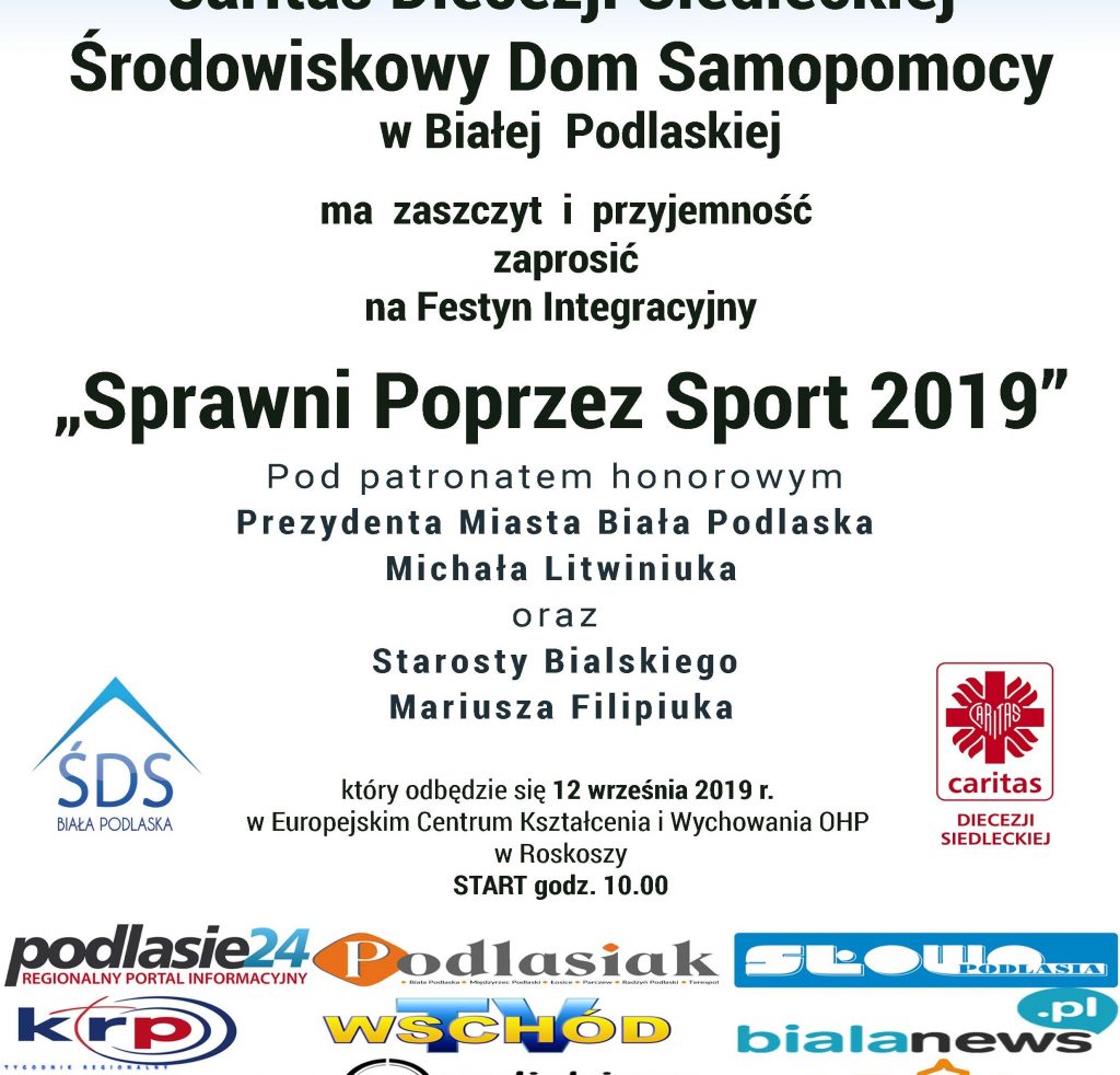 Wydarzenie objęli patronatem honorowym: Prezydent Miasta Biała Podlaska Michał Litwiniuk oraz Starosta Bialski Mariusz Filipiuk. Patronat medialny zapewnili: portal podlasie24.pl, Katolickie Radio Podlasie, Echo Katolickie, Podlasiak, TV Wschód, Radio Biper, Słowo Podlasia, bialanews.pl, pulsmiasta.tv. Impreza jest dofinansowana przez PFRON.
