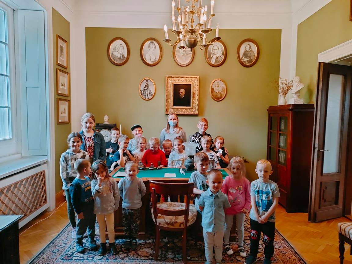 18 sierpnia 2021 r. w Muzeum Józefa Ignacego Kraszewskiego w Romanowie odbyły się zajęcia edukacyjne dla dzieci pn. „Romanowski dwór domem małego Józia”. Uczestnicy zajęć zwiedzili ekspozycję stałą muzeum. Największą uwagę naszych małych turystów przykuło: biurko pisarza, gęsie pióro, ulubiona zabaweczka Józia z czasów dzieciństwa, laska i torba podróżna oraz najstarsza książka. Po zrobieniu wspólnej fotografii wszyscy udali się na drugą część spotkania, która odbyła się w sali konferencyjnej. Dzieci wysłuchały bajki J. I. Kraszewskiego „O koguciku i kurce”, a następnie miały za zadanie ułożyć puzzle przedstawiające ilustracje z różnych bajek pisarza. W parku na dzieci czekały przygotowane gry i zabawy ruchowe. Ostatnim punktem wydarzenia było wspólne ognisko z kiełbaskami.