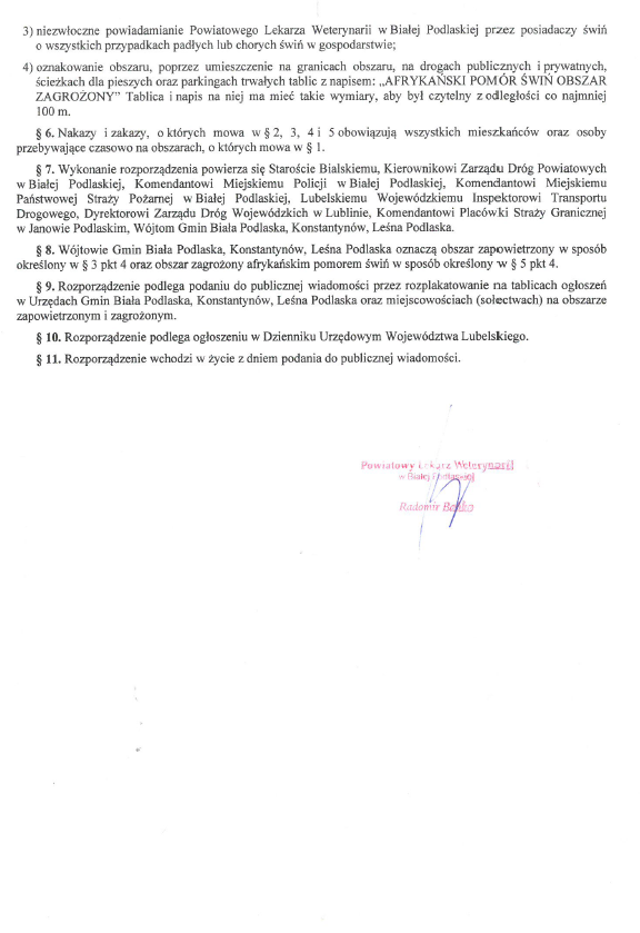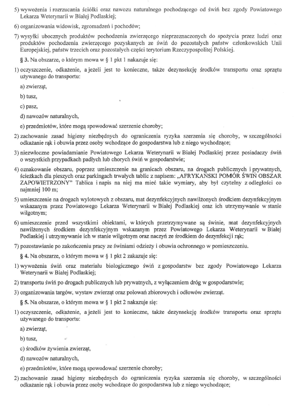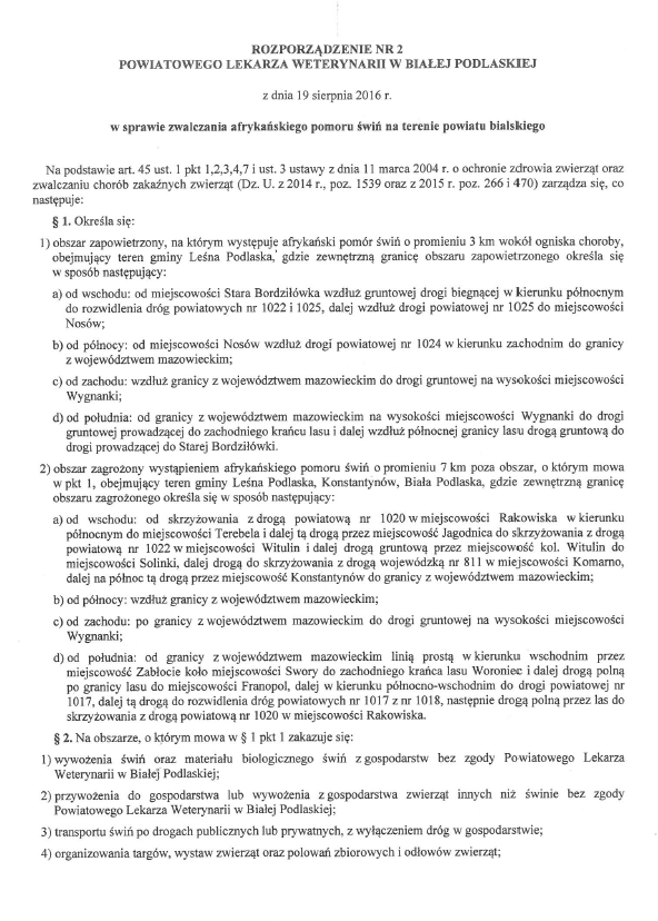 Rozporządzenie Powiatowego Lekarza Weterynarii w sprawie zwalczania afrykańskiego pomoru świń na terenie powiatu bialskiego 22 sierpnia 2016 / Przez Anna Jóźwik