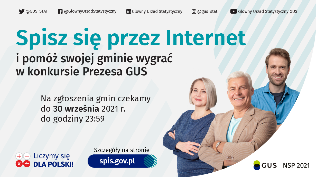 Wystartował konkurs Prezesa GUS na najbardziej cyfrową gminę. Wystarczy spisać się samodzielnie przez Internet, a następnie zachęcić do tego rodzinę, znajomych i osoby z najbliższego otoczenia. Przypominamy, że spis trwa do 30 września 2021 roku.