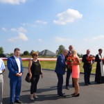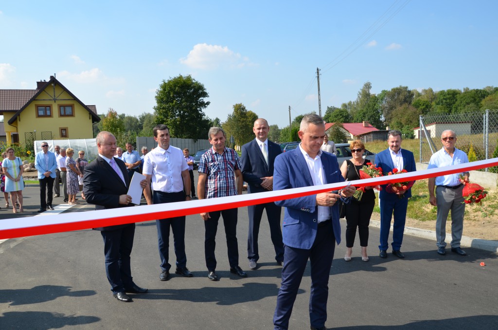 Mieszkańcy w podziękowaniu za nowe drogi, wręczyli władzom gminy i zaproszonym gościom bukiety kwiatów.