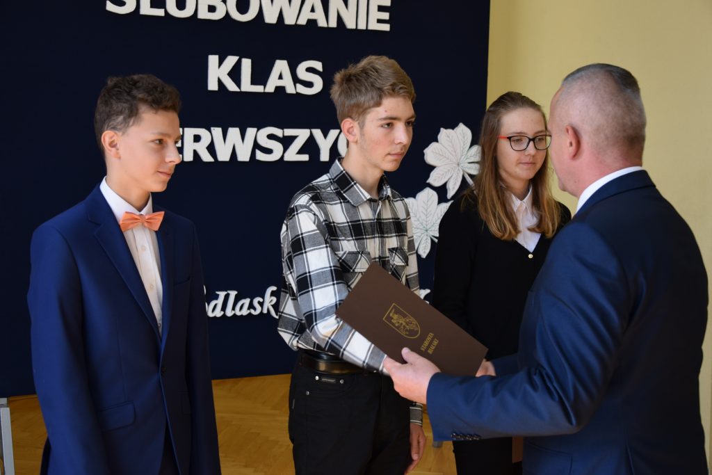 W poszczególnych szkołach powiatu dyplomy potwierdzające otrzymanie stypendium wręczył uczniom starosta bialski Mariusz Filipiuk. Jako pierwsi dostali je stypendyści (29 osób) z Zespołu Szkół im. Adama Naruszewicza w Janowie Podlaskim. Uroczystość wręczenia wyróżnień połączona była ze ślubowaniem klas pierwszych. Podobnie jak w Liceum Ogólnokształcącym im. Władysława Zawadzkiego w Wisznicach, gdzie stypendium będzie pobierało 8 uczniów. W pozostałych szkołach powiatu wręczenie stypendiów towarzyszyło obchodom Dnia Edukacji Narodowej. W Zespole Szkół im. Wł. St. Reymonta w Małaszewiczach dyplomy odebrało 25 uczniów. W szkołach w Międzyrzecu Podlaskim stypendium Starosty Bialskiego otrzymały: 54 osoby z Liceum Ogólnokształcącego im. Gen. Wł. Sikorskiego; 33 osoby z Zespołu Szkół Ekonomicznych im. Marii Dąbrowskiej i 7 osób z Zespół Szkół Technicznych im. Unitów Podlaskich. Łącznie wyróżnionych zostało 156 uczniów, którzy w poprzednim roku szkolnym osiągnęli bardzo dobre wyniki w nauce, ich średnia ocen wyniosła powyżej 4,5, posiadają co najmniej dobrą ocenę z zachowania, a także wyróżniają się działalnością na rzecz społeczności szkolnej oraz powiatowej, wojewódzkiej i krajowej. Zarząd Powiatu w Białej Podlaskiej podjął decyzję o zwiększeniu budżetu szkół z dochodów własnych powiatu na wypłatę stypendiów w roku szkolnym 2018/2019. Na ten cel przeznaczono prawie 170 tys. zł.