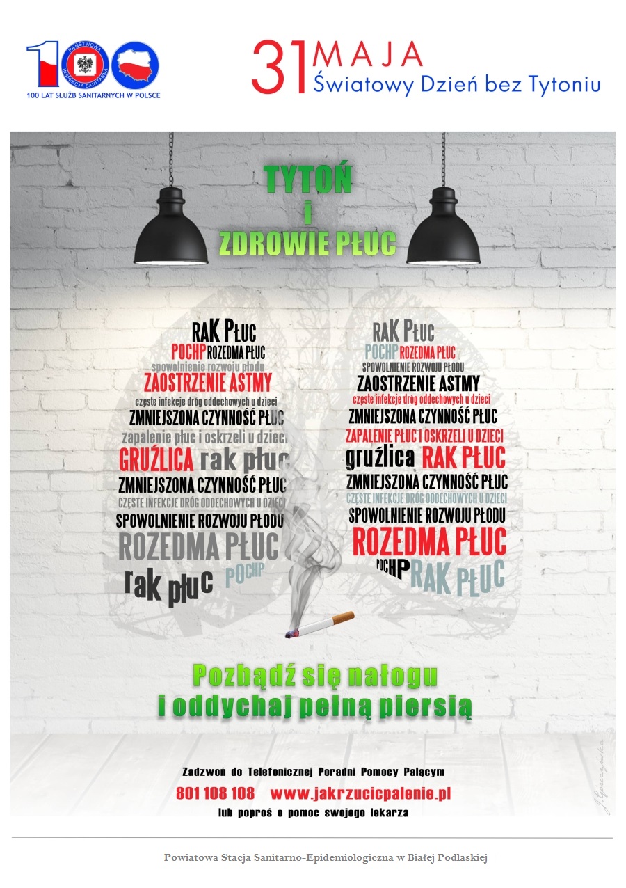 31 maja obchodzony jest Światowy Dzień Bez Tytoniu. W 2019 r. pod hasłem „Tytoń i zdrowie płuc”.