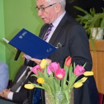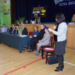 Jeszcze przed napisaniem godzinnego testu słowo do młodych zdolnych gimnazjalistów rzekli starosta bialski Tadeusz Łazowski, dyrektor Instytutu Filologii Słowiańskiej UMCS w Lublinie prof. dr hab. Michał Sajewicz, dyrektor liceum w Wisznicach Monika Władyczuk-Pakuła. Dyrektor powitała gości i podziękowała za obecność. Podkreśliła, że liceum w Wisznicach stwarza bardzo dobre warunki do rozwoju umiejętności językowych uczniów, szkoła realizuje wiele przedsięwzięć i inicjatyw temu służących. Efektem tego jest chociażby sukces uczennicy z II klasy Magdalena Linkiewicz, która w eliminacjach okręgowych XLVII Olimpiady Języka Rosyjskiego przeprowadzonych w Lublinie zajęła I lokatę, kwalifikując się do etapu centralnego. Wśród pozostałych gości byli obecni: dr hab. Alina Orłowska wicedyrektor IFS UMCS w Lublinie, prof. dr hab. Feliks Czyżewski kierownik Zakładu Ukrainistyki w Instytucie Filologii Słowiańskiej UMCS w Lublinie, Łukasz Jaszczuk radny powiatu bialskiego, Piotr Dragan wójt Gminy Wisznice, Bogusław Szczęśniak dyrektor Publicznego Gimnazjum nr 1 im. K.K. Baczyńskiego w Wisznicach, Mirosław Konieczny dyrektor Zespołu Szkół w Woli Uhruskiej, Gimnazjum im. Jana Pawła II w Woli Uhruskiej.