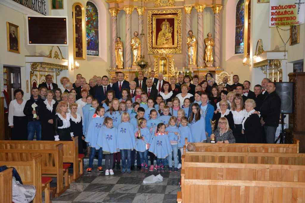 Dnia 28 października 2018 roku odbył się VI Regionalny Przegląd Chórów i Zespołów Wokalnych „Jak Paciorki Różańca”. W niedzielne popołudnie świątynia zapełniła się słuchaczami i zaproszonymi artystami, aby słuchać na żywo pieśni ku czci Matki Bożej Różańcowej. Wszystkich ciągnęła myśl, by zanurzyć się w harmonii głosów dzieci, młodzieży i dorosłych. Pierwsza zaprezentowała się Schola Parafii Narodzenia NMP w Motwicy. Dziewczynki i chłopcy od przedszkolaka do nastolatka wykonali „Cały jestem Twój Maryjo” – ks. Dominika Chmielewskiego, „Mama”- Dzieci z Brodą i „Nie bój się wypłyń na głębię”- Jacka Sykulskiego. Liczna grupa śpiewających dzieci ubranych w błękitne peleryny zaprezentowała swój repertuar z pełną koncentracją i zaangażowaniem. Na gitarze grała Monika Chudzik na bębnie Maksymilian Chudzik.