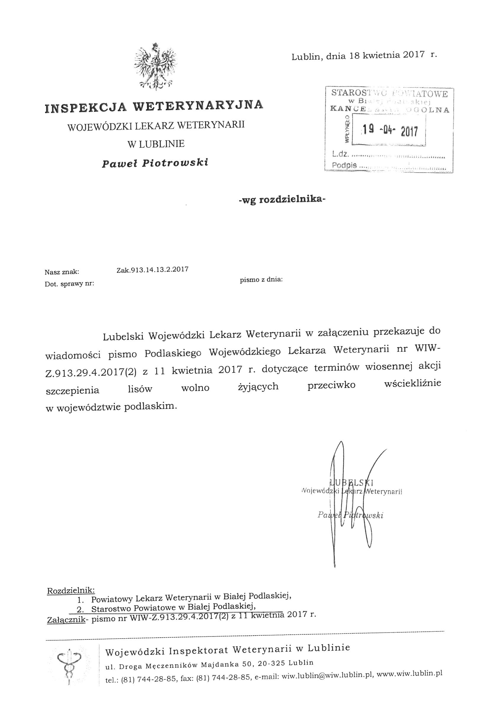 Wiosenna akcja szczepienia lisów wolno żyjących przeciw wściekliźnie (woj. mazowieckie i podlaskie) – informacja
