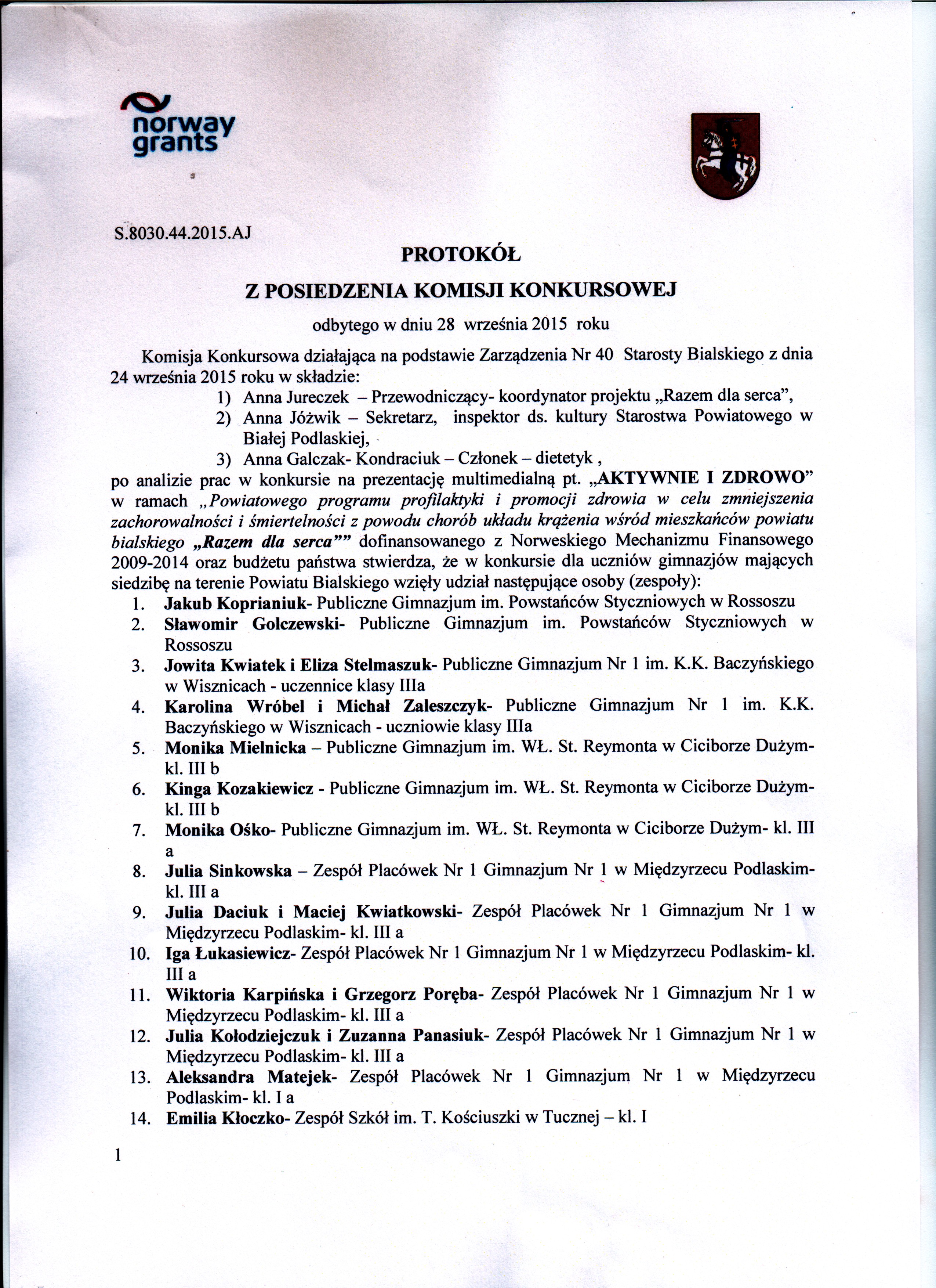 Wyniki konkursu na prezentację multimedialną pt. "Aktywnie i zdrowo" 6 października 2015 / Przez Administrator