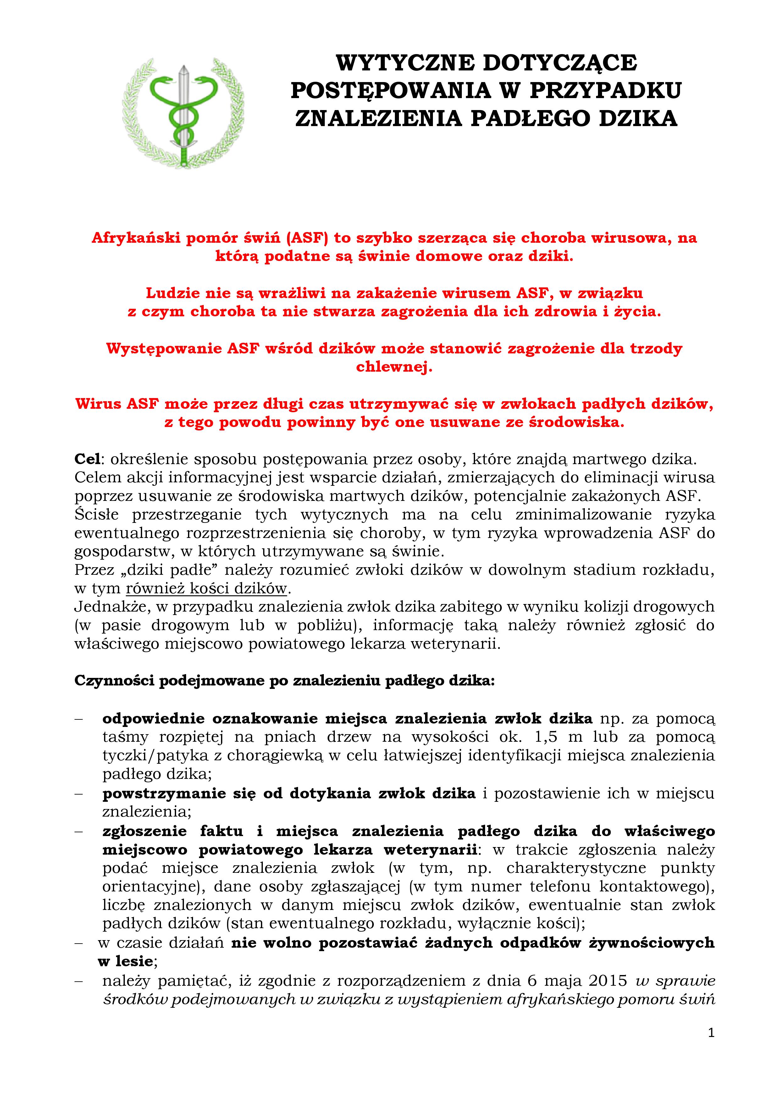 Wytyczne dotyczące postępowania w przypadku znalezienia padłego dzika 13 grudnia 2017 / Przez Wioletta Bielecka