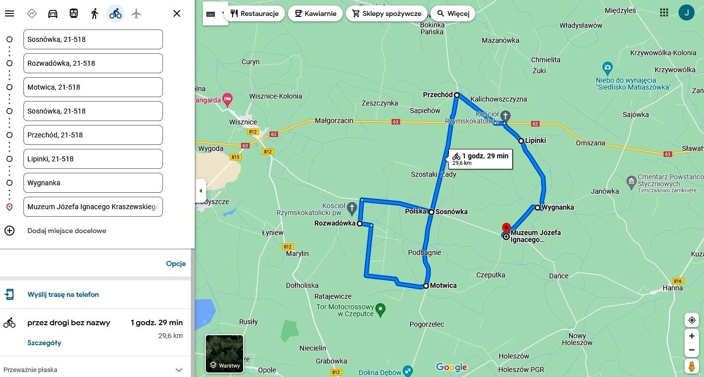 PRZEBIEG TRASY Sosnówka – Rozwadówka – Motwica – Sosnówka – Przechód – Lipinki – Wygnanka – Romanów