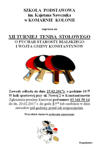 XII Turniej Tenisa Stołowego o Puchar Starosty Bialskiego i Wójta Gminy Konstantynów 9 lutego 2017 / Przez Elżbieta Głowińska