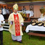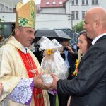 Ważnym momentem uroczystości było przekazanie chleba. Przy śpiewie pieśni „Plan niesiemy plon” w wykonaniu Zespołu Śpiewaczego z Rozwadówki starostowie dożynek, wręczyli go staroście powiatu. Następnie wraz z wójtem, przewodniczącym Rady Gminy Janem Kwietniem, wicestarostą bialskim Januszem Skólimowskim i starostami dożynek częstował on zebranych kawałkami chleba.