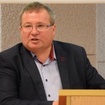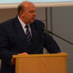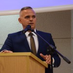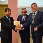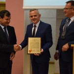 XXV sesja Rady Powiatu w Białej Podlaskiej już za nami. Tym razem ta szczególna jubileuszowa sesja odbyła się w auli Państwowej Szkoły Wyższej im. Papieża Jana Pawła II w Białej Podlaskiej. 23 września 2016 r. obrady rozpoczęły się od wystąpień gospodarzy. Prof. zw. dr hab. Józef Bergier, rektor Państwowej Szkoły Wyższej im. Papieża Jana Pawła II w Białej Podlaskiej mówił o roli powiatu bialskiego w rozwoju bialskiej uczelni. Natomiast doc. dr inż. Tomasz Grudniewski, dyrektor Centrów Badawczych Państwowej Szkoły Wyższej im Papieża Jana Pawła II w Białej Podlaskiej przestawił bazę badawczą i ofertę skierowaną do mieszkańców powiatu bialskiego. Po tych prelekcjach i odpowiedziach na pytania związanych z działalnością PSW, szczególnie jeśli chodzi o badania nad boreliozą i planach rozwoju uczelni w Terespolu starosta bialski Mariusz Filipiuk podziękował za dotychczasową bardzo dobrą współpracę z władzami uczelni. Pogratulował także specjalistycznej kadry oraz bazy dydaktycznej i badawczej. Dzięki temu mieszkańcy powiatu, szczególnie studenci, których odsetek wśród uczących się w PSW jest przeważający, mogą z satysfakcją korzystać z oferty uczelni. Starosta wraz z przewodniczącym rady Mariuszem Kiczyńskim wręczyli rektorowi uczelni pamiątkowy grawerton.
