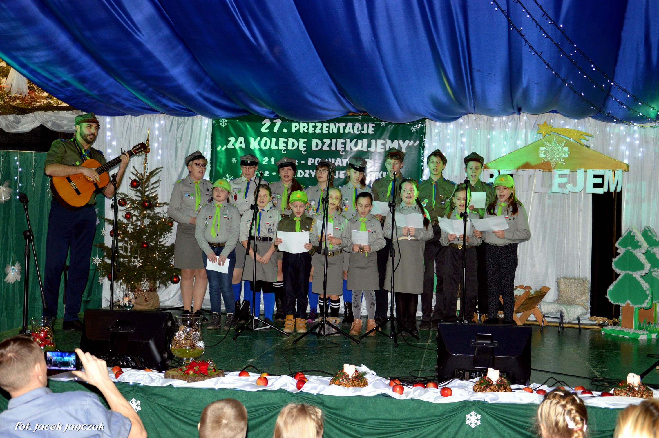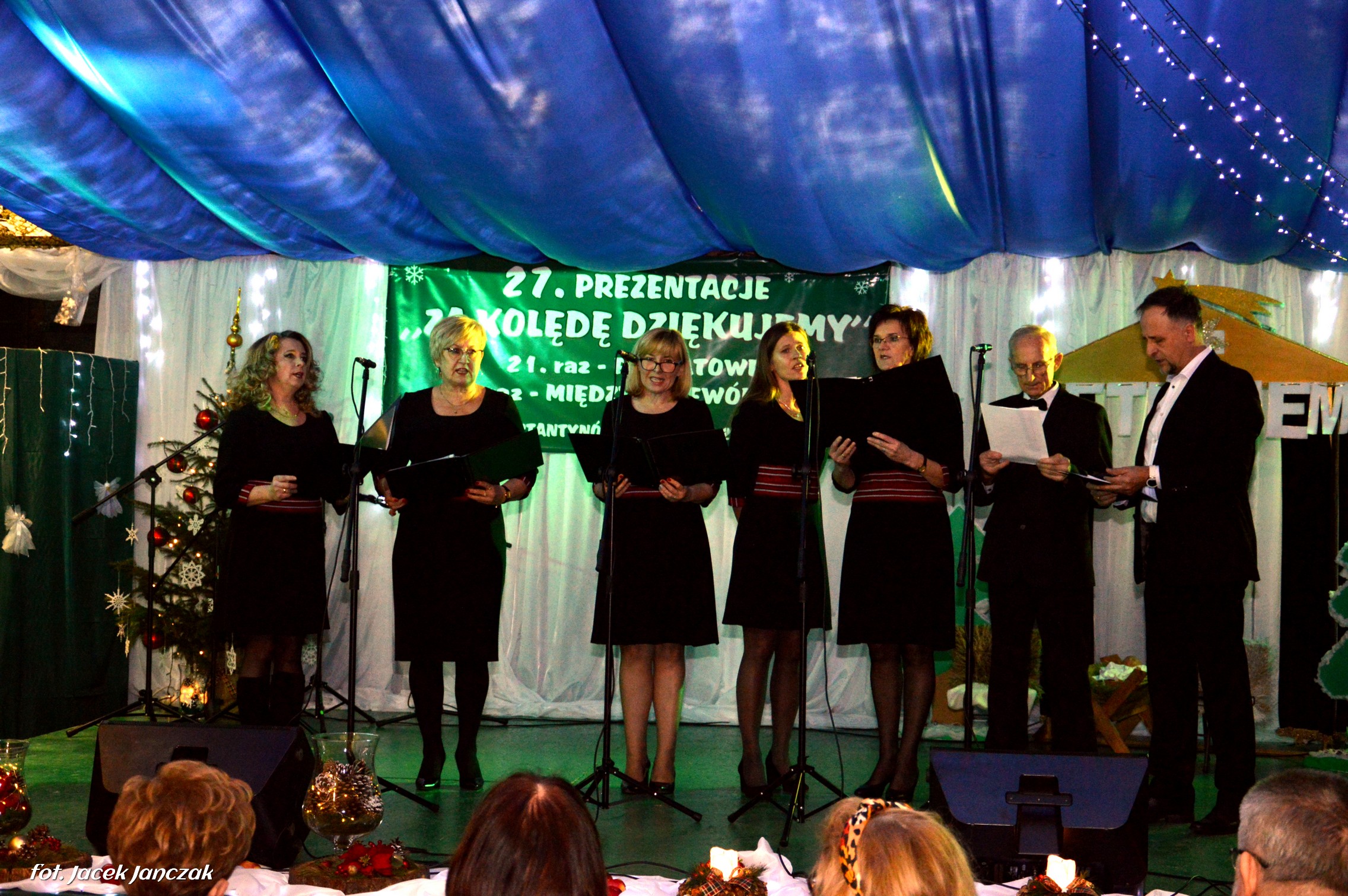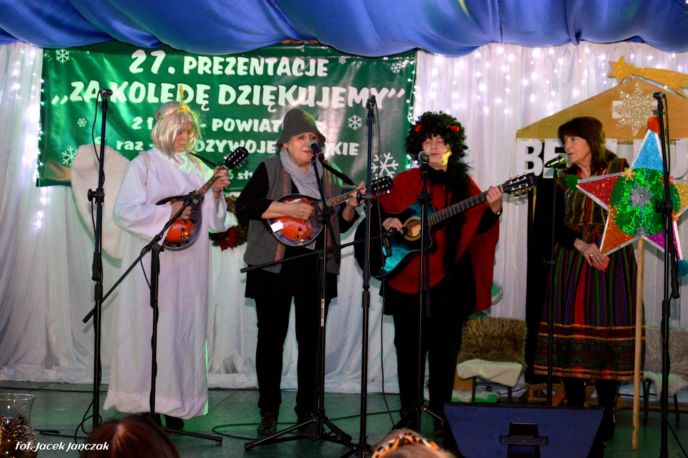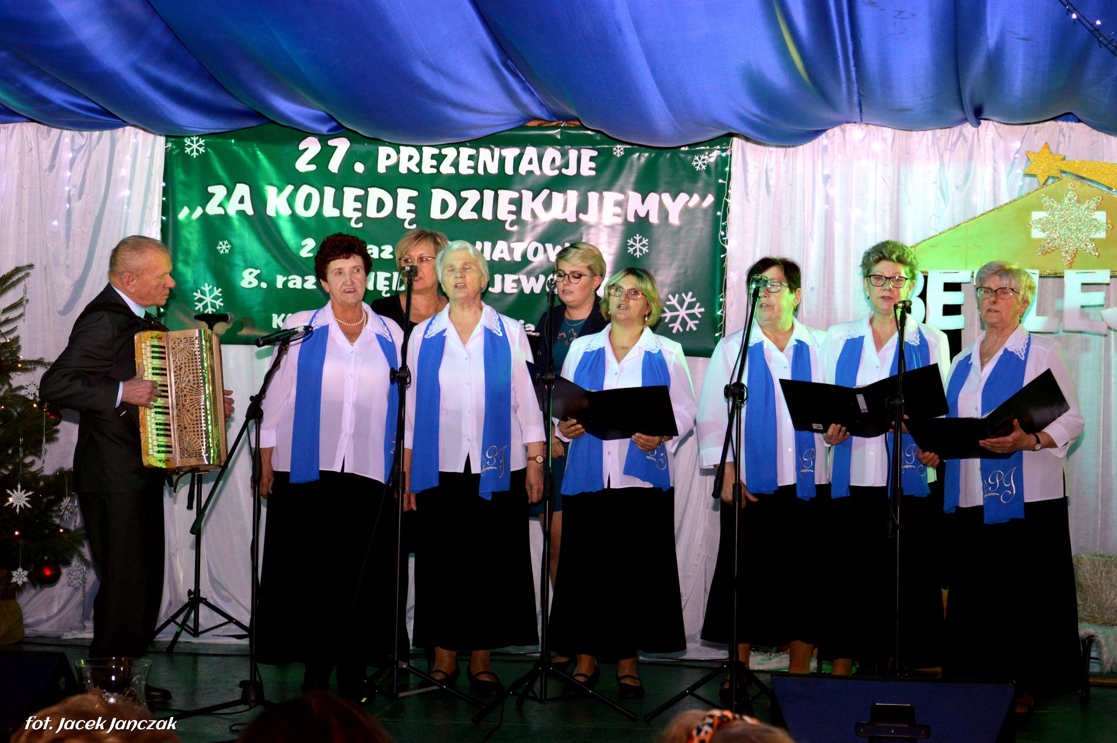 Reprezentacje Gospodarzy to dzieci z Przedszkola Samorządowego, które z zaangażowaniem wykonały Jasełka z akcentami ekologicznymi. Z dobrej strony pokazali się też: świetny głosowo zespół Melizmat i grupa dziecięca LATIDO, kierowane przez Krzysztofa Olesiejuka, grupa śpiewacza Pogodna Jesień ze Zdzisławem Marczukiem na harmonii, Zacisze, reprezentujące Dom Pomocy Społecznej, chór parafii pw. św. Elżbiety Węgierskiej, miejscowe zuchy i harcerze oraz dziecięca Schola prowadzona od 5 miesięcy przez wikariusza parafii ks. Grzegorza Walczuka, który zaśpiewał wzruszająco „Kolędę dla nieobecnych” a także dwie uczestniczki Warsztatu Terapii Zajęciowej działającego przy GOPS, dziewczynki z kl. I z Zespołu Szkolno-Przeszklonego, grupa wokalna ze Szkoły Podstawowej w Komarnie Kolonii.