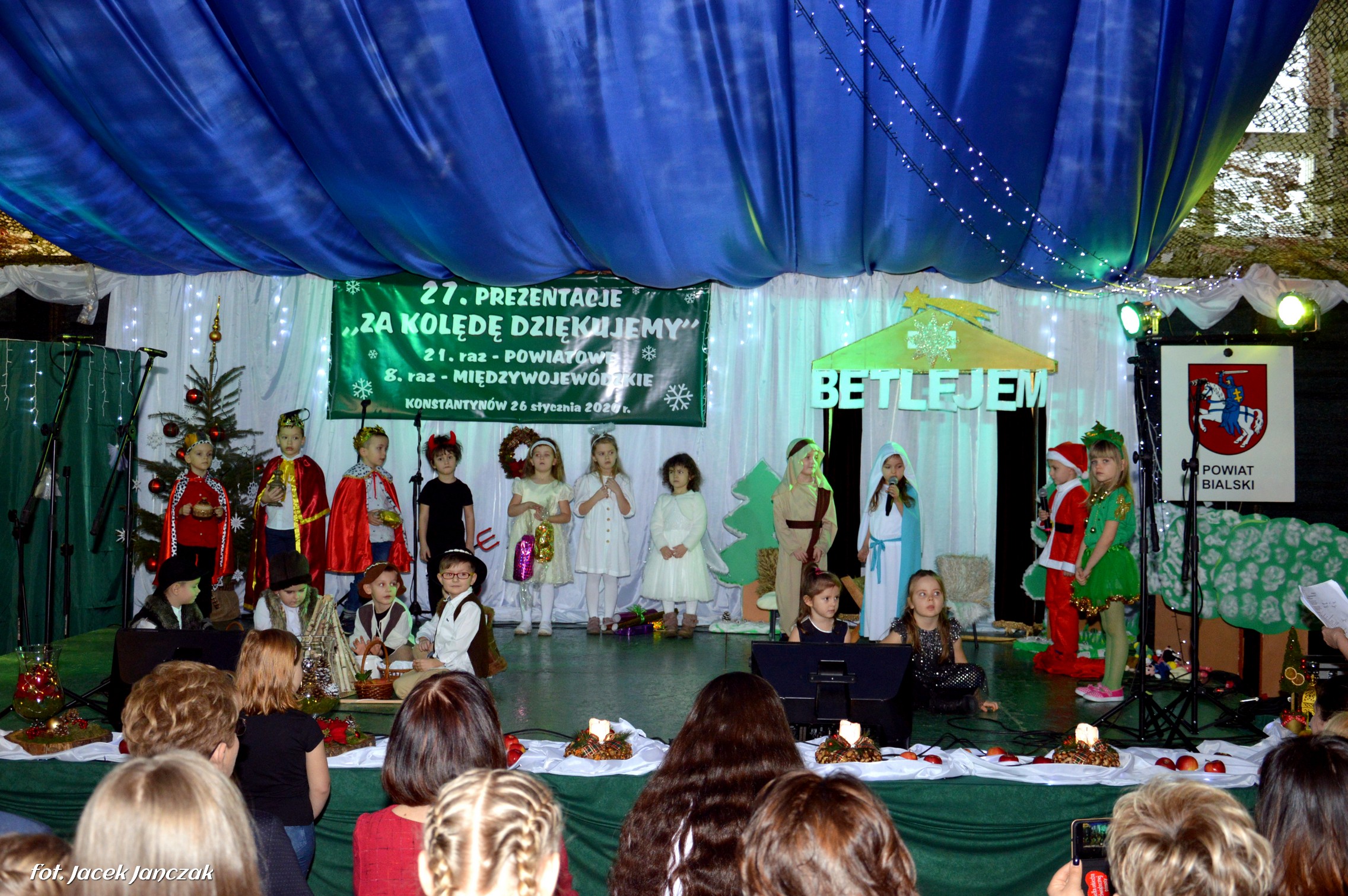 Gminne Centrum Kultury w Konstantynowie przygotowało 27. Prezentacje „Za kolędę dziękujemy” podczas, których zaprezentowano prace 13. konkursu pt. „Anioły i ozdoby Bożonarodzeniowe”. Sala gimnastyczna miejscowej szkoły wypełniła się w niedzielę 26 stycznia do ostatniego miejsca. Prezentacje zostały dofinansowane przez Starostwo Bialskie.