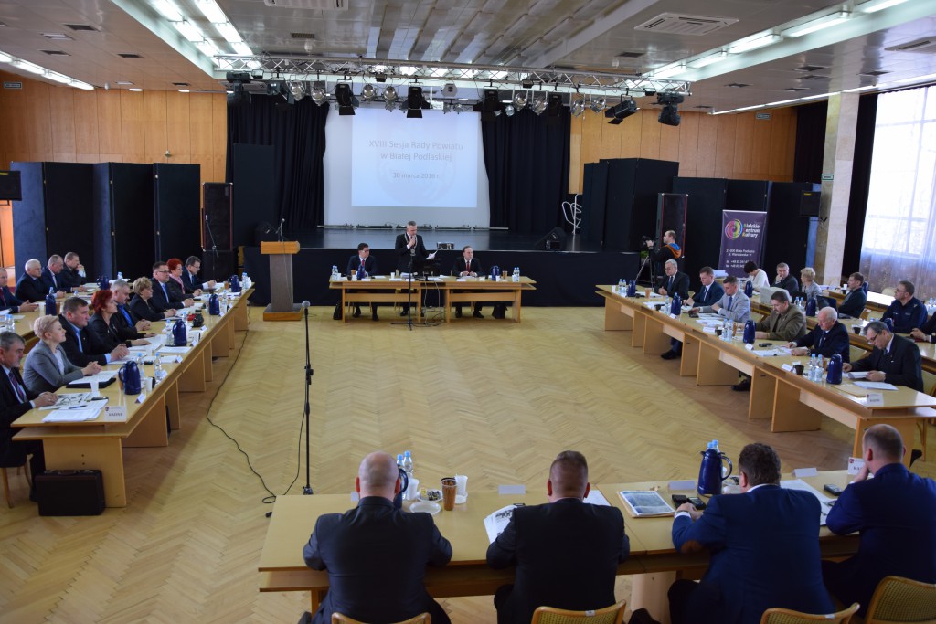 Podczas XVIII sesji Rady Powiatu w Białej Podlaskiej, która odbyła się 30 marca podjęto uchwały w sprawach: określenia zadań z zakresu zatrudniania oraz rehabilitacji zawodowej i społecznej osób niepełnosprawnych, na które przeznacza się środki finansowe Państwowego Funduszu Rehabilitacji Osób Niepełnosprawnych w 2016 roku, zmian w budżecie Powiatu Bialskiego na 2016 rok, a także zmiany uchwały w sprawie Wieloletniej Prognozy Finansowej Powiatu Bialskiego na lata 2016 – 2019. Radni przyjęli również sprawozdania z komisji za 2015 r. i rozpatrzyli sprawozdanie z działalności komendanta miejskiego Policji oraz informacji o stanie porządku i bezpieczeństwa publicznego na terenie powiatu za 2015 r., jak również komendanta miejskiego Państwowej Straży Pożarnej o stanie bezpieczeństwa powiatu w zakresie ochrony przeciwpożarowej za 2015 rok.