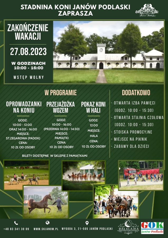 Zakończenie wakacji w Stadninie Koni Janów Podlaski 27.08.2023 22 sierpnia 2023 / Przez Marzena Hołownia