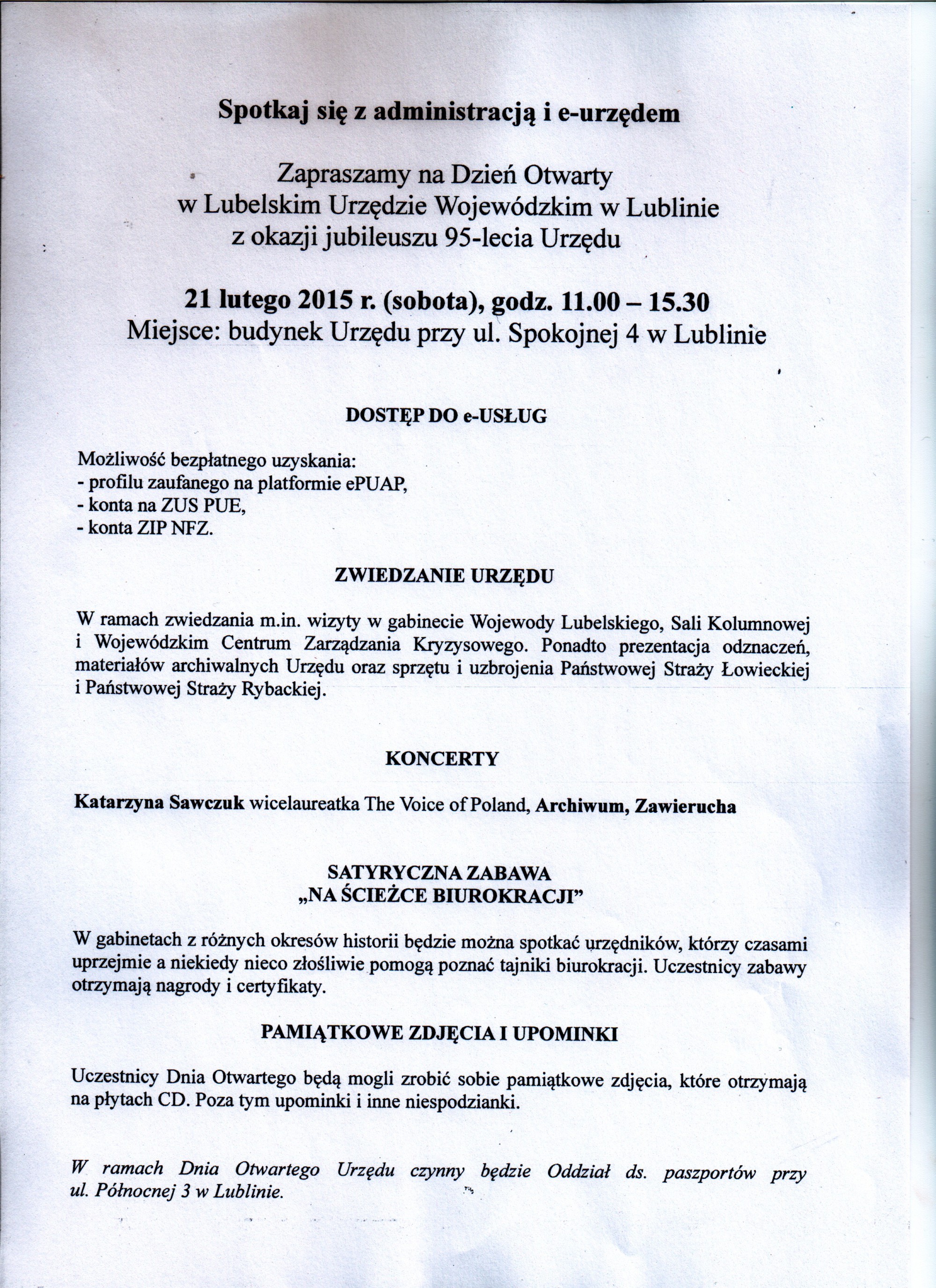 zaproszenie na dzień otwarty 11 lutego 2015 / Przez Anna Jóźwik Urząd Wojewódzki w Lublinie zaprasza na dzień otwarty. Szczegóły poniżej
