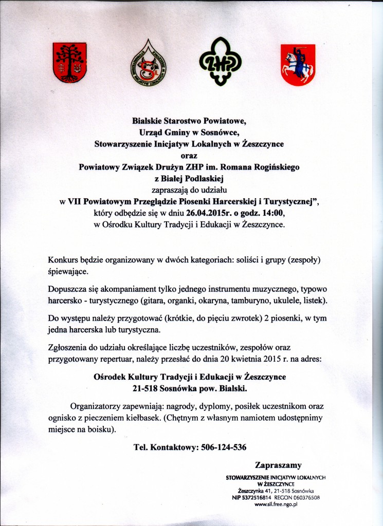zaproszenie na VII Powiatowy Przegląd Piosenki Harcerskiej i Turystycznej 26 marca 2015 / Przez Anna Jóźwik .