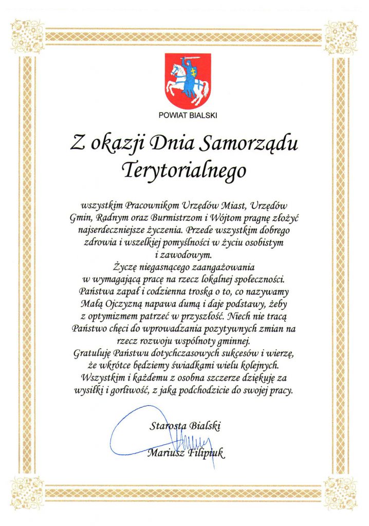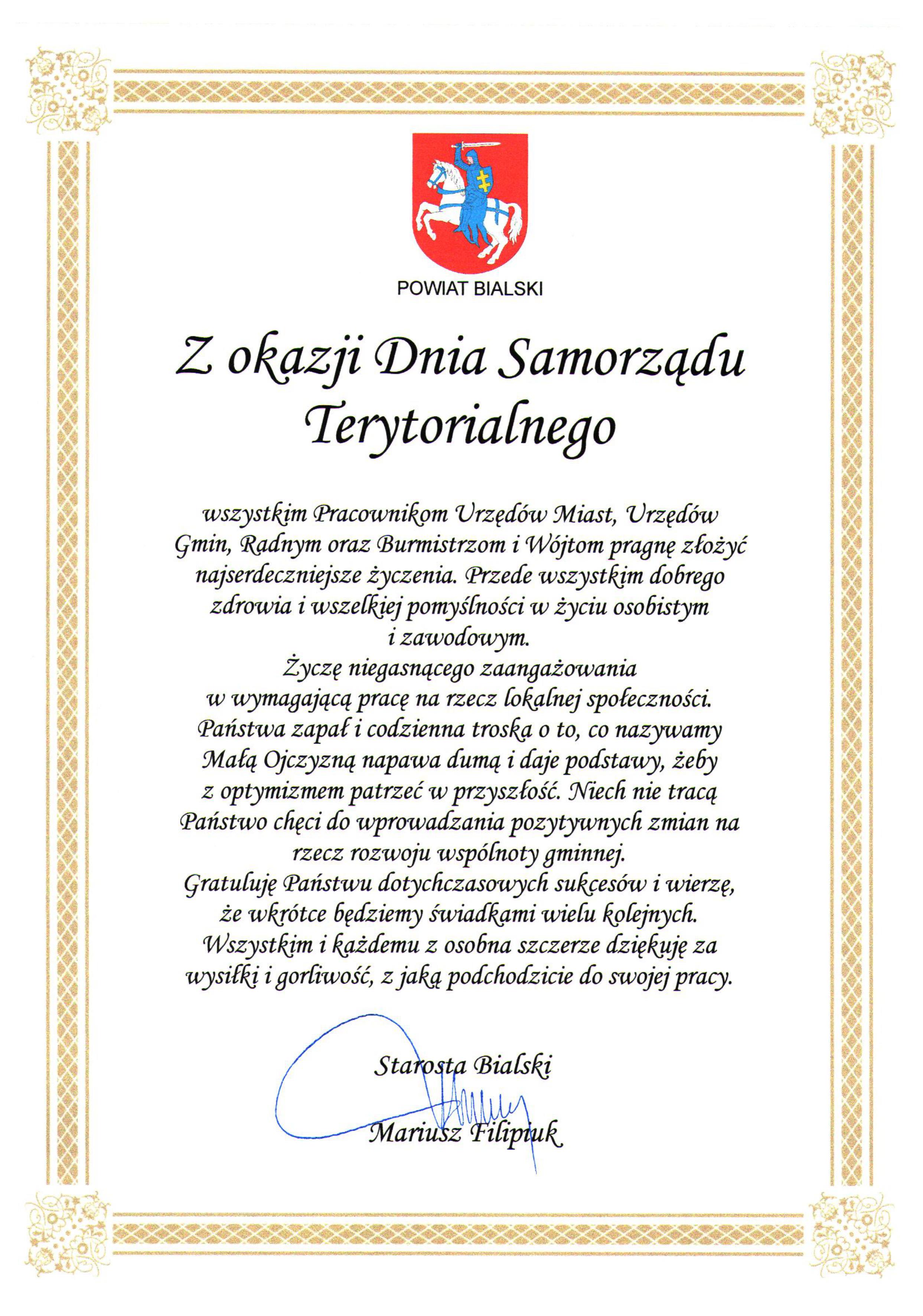 Życzenia z okazji Dnia Samorządu Terytorialnego